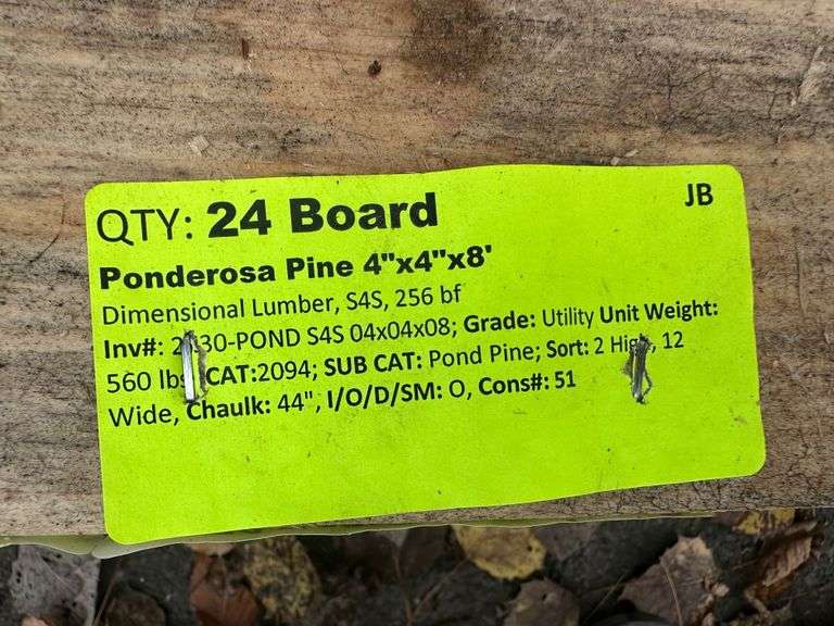 Ponderosa Pine 4"x4"x8'. Dimensional Lumber, S4S, 256 Board Foot, Grade: Utility * Condition Note: Mold, Weathering, Please See Photos * Weight: 560. Sold by: Board. Sold as: Price x Quantity.