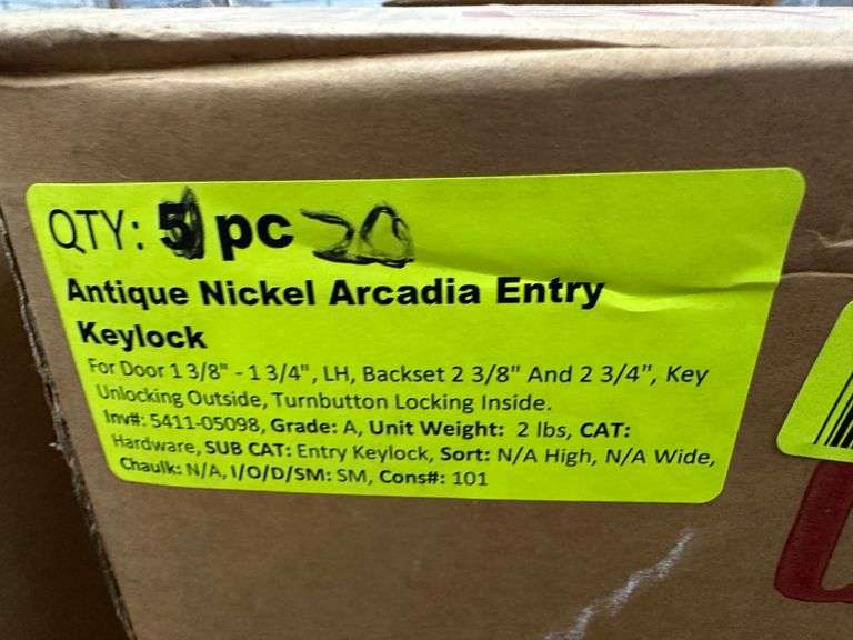 Antique Nickel Arcadia Entry Keylock. For Doors 1 3/8" - 1 3/4" LH Backset 2 3/8" And 2 3/4" Key Unlocking Outside Turnbutton locking Inside Grade: A Weight: 2. Sold by: Piece. Sold as: Price x Quantity.