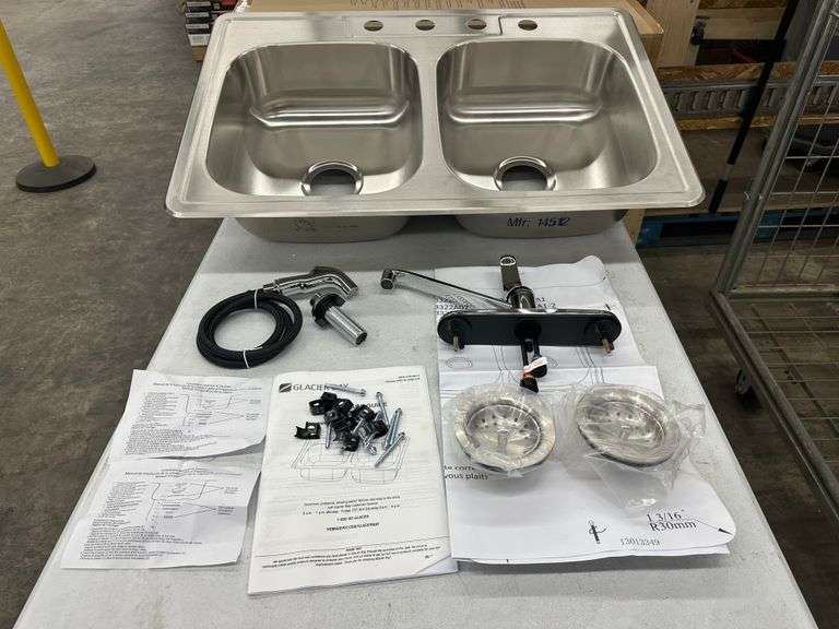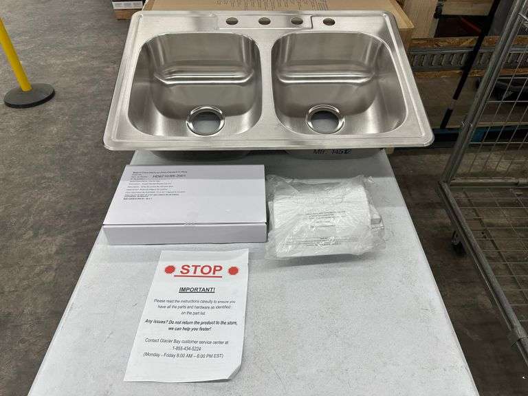 33" Drop-In 50/50 Double Bowl 22 Gauge Stainless Steel Kitchen Sink. By, Glacier Bay Grade: A Weight: 20. Sold by: Piece. Sold as: Price x Quantity.