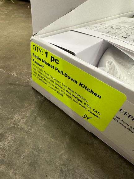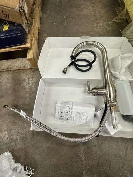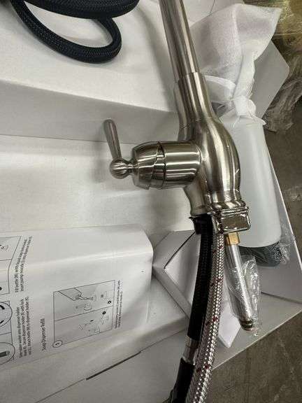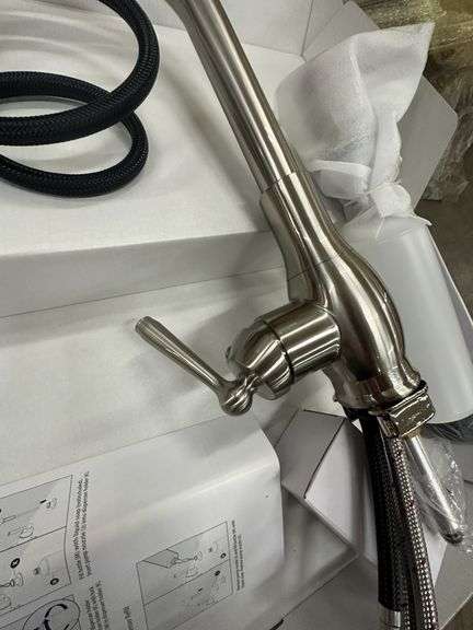 Satin Nickel Pull-Down Kitchen Faucet. With Plastic Soap Dispenser, Two Hole Installation, Grade: A Weight: 8. Sold by: Piece. Sold as: Price x Quantity.