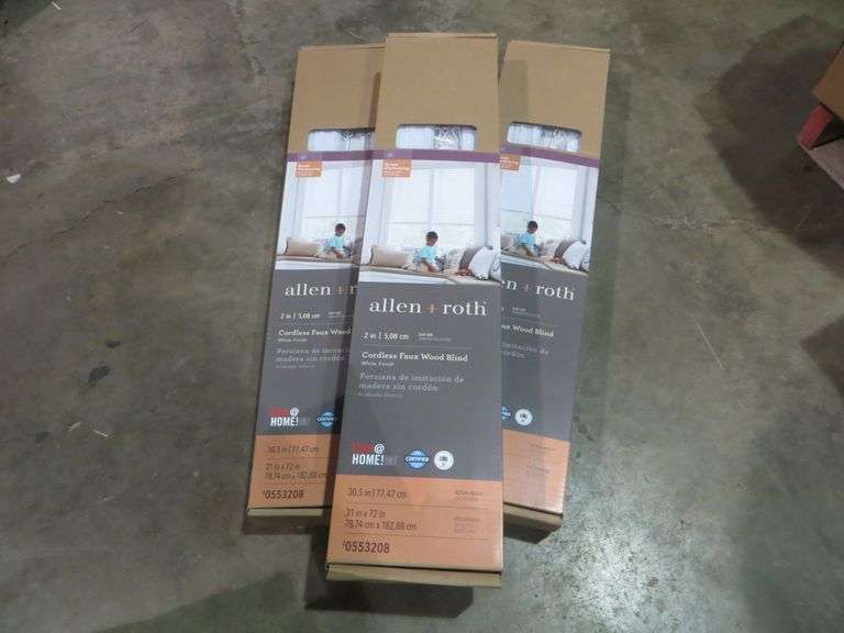 Window Blinds, 2"x31"x72". By: Allen + Roth, White Faux Wood, Cordless, Room Darkening, Grade: 1st Weight: x. Sold by: Piece. Sold as: Price x Quantity.