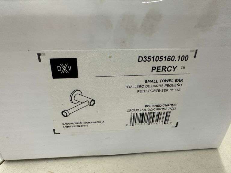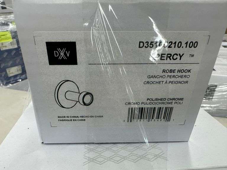 Polished Chrome, Percy Line: Toilet Paper Holder, Towel Holder, Robe Hook, Grade A. DXV by American Standard, Polished Chrome Shower Set including Assembly Hardware. Lems 5045-D35105235.100, 5045-D35105160.00, 5045-D35105210.100 Weight: 9. Sold by: Piece. Sold as: Price x Quantity.