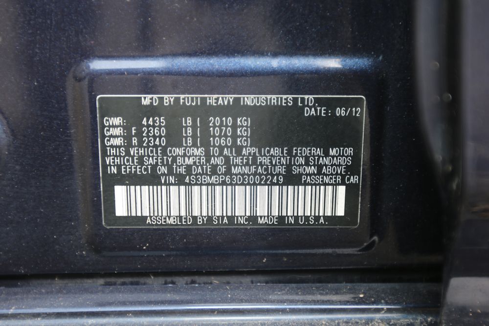 2013 Subaru Legacy 2.5i Limited Sedan, 2.5L H4 SOHC 16V engine, VIN# 4S3BMBP63D3002249, odometer reading: 135,593 Miles. Includes leather interior, AC, sunroof, navigation system, AM/FM/CD, power windows/locks/mirrors/seats. Runs and drives. Title and keys available.