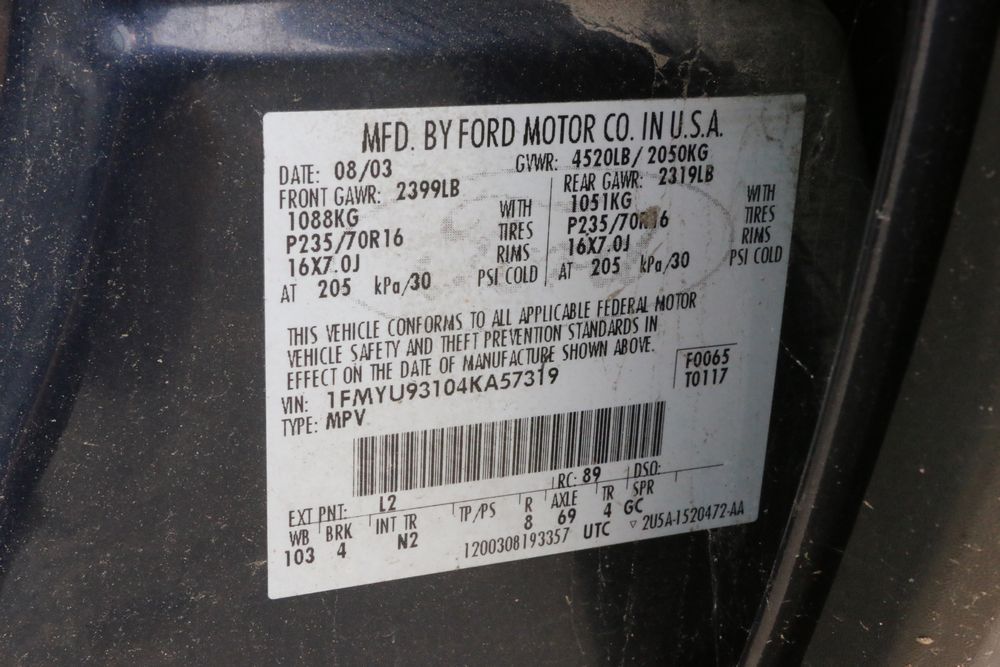 2004 Ford Escape XLT 4WD, 3.0L V6, Automatic transmission. VIN: 1FMYU93104KA57319. Leather interior, power windows/locks/mirrors/seats, AM/FM radio with 6-CD changer, heat & A/C, rear cargo cover. Odometer reading 156,802. Runs and Drives. Keys and Title available.