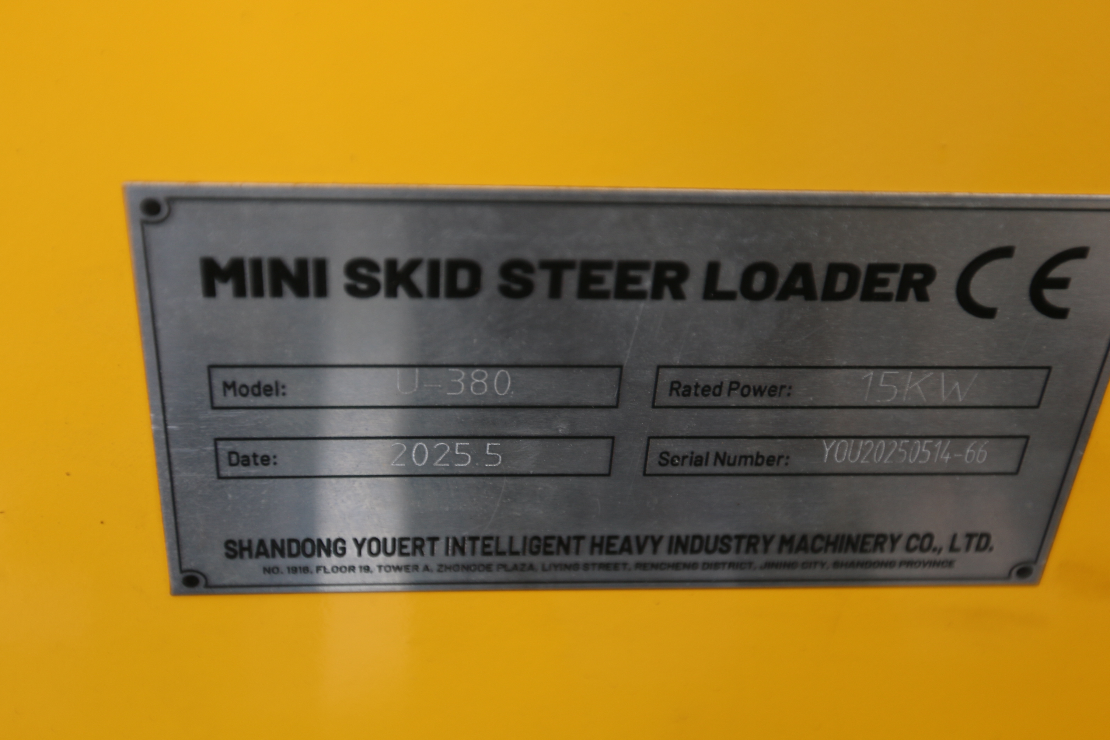 New 2025 Youert Mini Skid Steer Loader, model YOU-380 with Gasoline engine and rubber tracks. Hours read less than one hour.