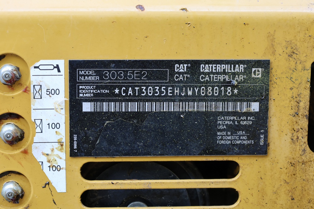 2021 Caterpillar model 303.5E Excavator 8,200 lb. PIN: CAT3035EHJWY08018. Hour meter reading: 1942 hrs. Seller reports: Operates as intended. Seller ID # 525-38.