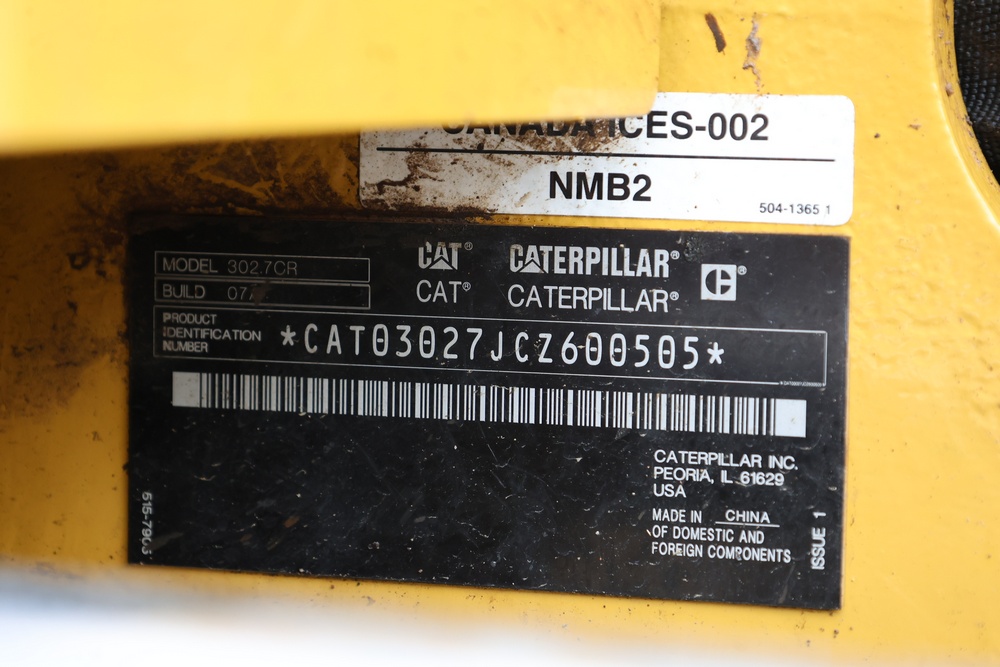 2022 Caterpillar model 302.7CR Excavator 5,800 lb. PIN: CAT03027JCZ600505. Hour meter reading: 447 hrs. Seller reports: Operates as intended. Seller ID # 515-06.