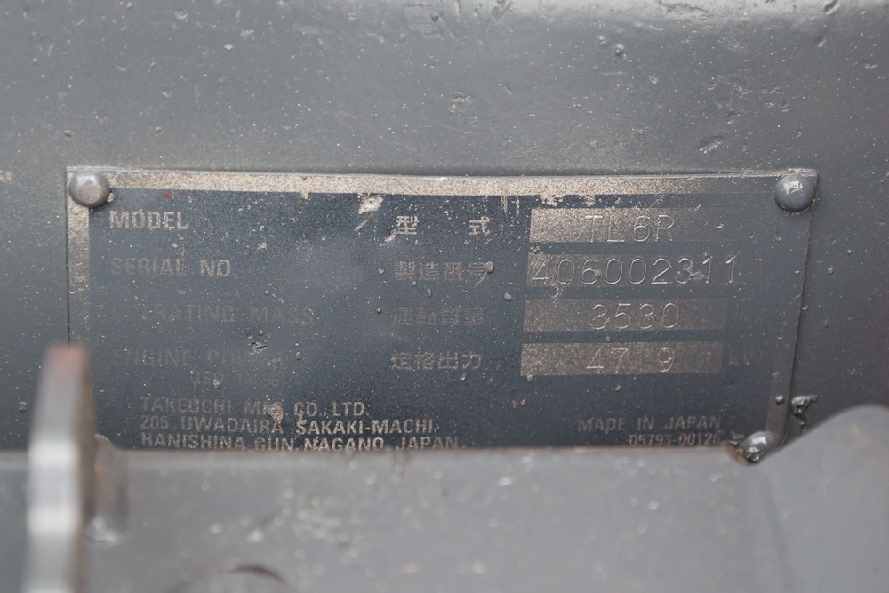 2020 Takeuchi model TL6 Track Loader 7500 lb. PIN: 406002311. Hour meter reading: 1794 hrs. Seller reports: Operates as intended. Seller ID # 241-16.