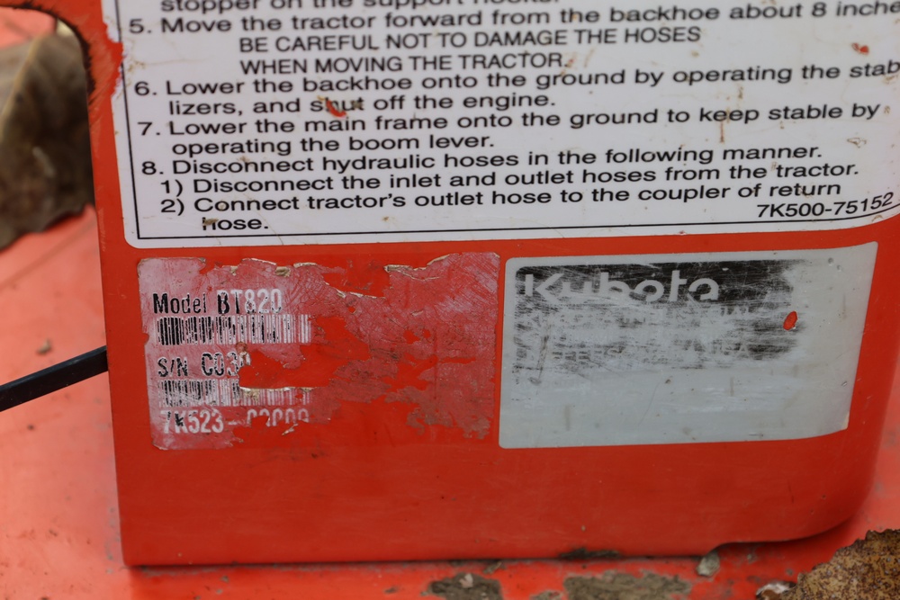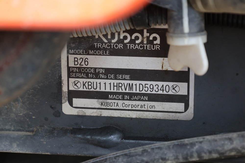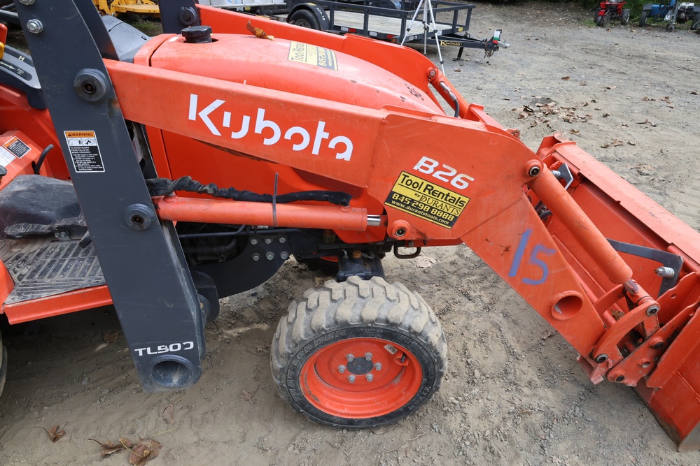2021 Kubota model TLB B26 tractor with loader and backhoe. PIN: KBU111HRVM1D59340. Hour meter reading: 742 hrs. Seller reports: Operates as intended. Seller ID # 507-10.