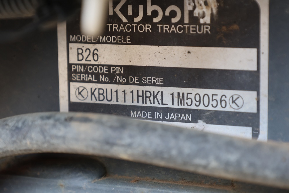 2021 Kubota model TLB B26 tractor with loader and backhoe. PIN: KBU111HRKL1M59056. Hour meter reading: 650. Seller reports: Operates as intended. Seller ID # 507-07.