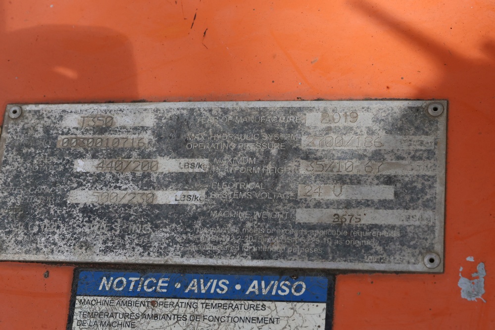 2019 JLG model T350 35' Bucket lift Artic PIN: 30010716. Hour meter reading: 242. Seller reports: Operates as intended. Seller ID # 647-07.