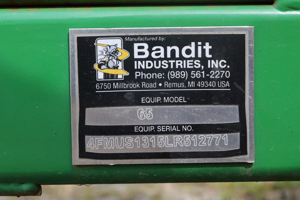 2020 Bandit model 65 Chipper 6" PIN: 4FMUS1315LR512771. Hour meter reading: 503. Seller reports: Operates as intended. Seller ID # 711-03.