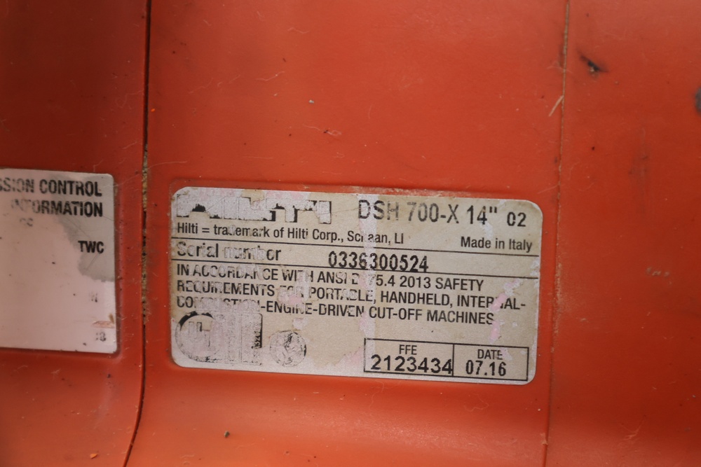 Hilti model DSH700 Cutoff saw 14" serial number 336300524. Seller reports: Operates as intended. Seller ID # 307-62.
