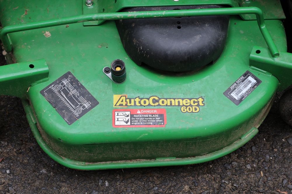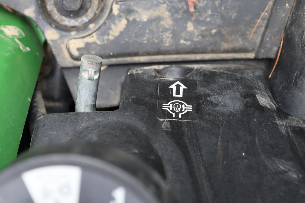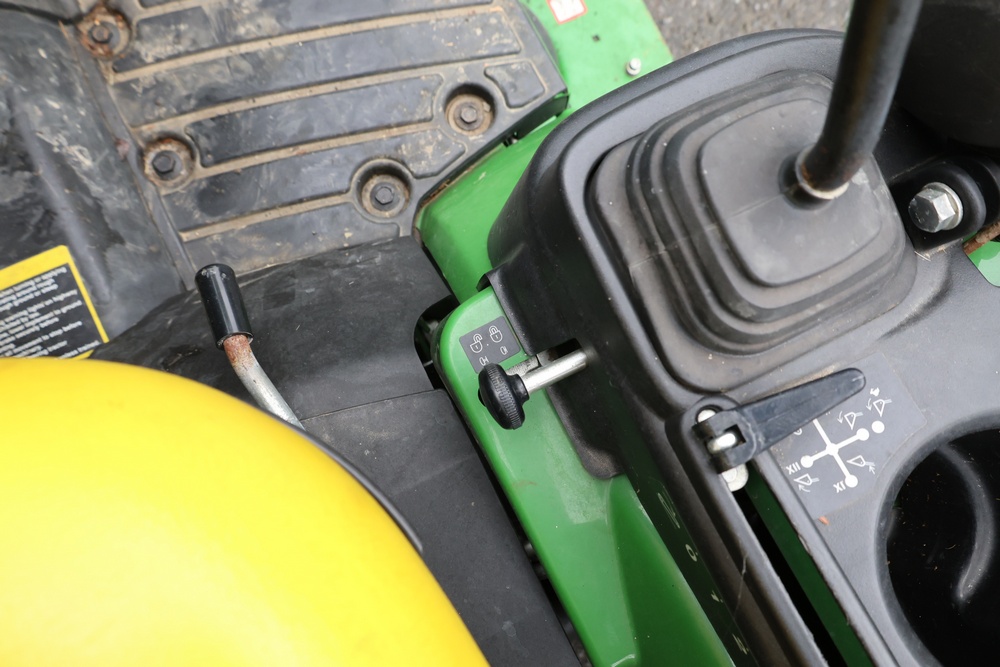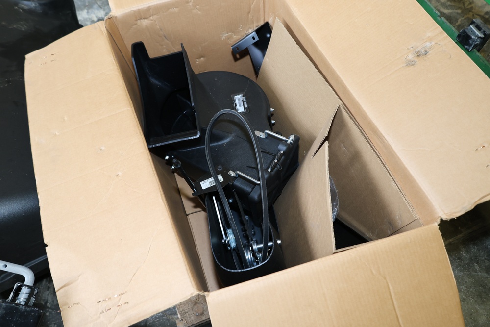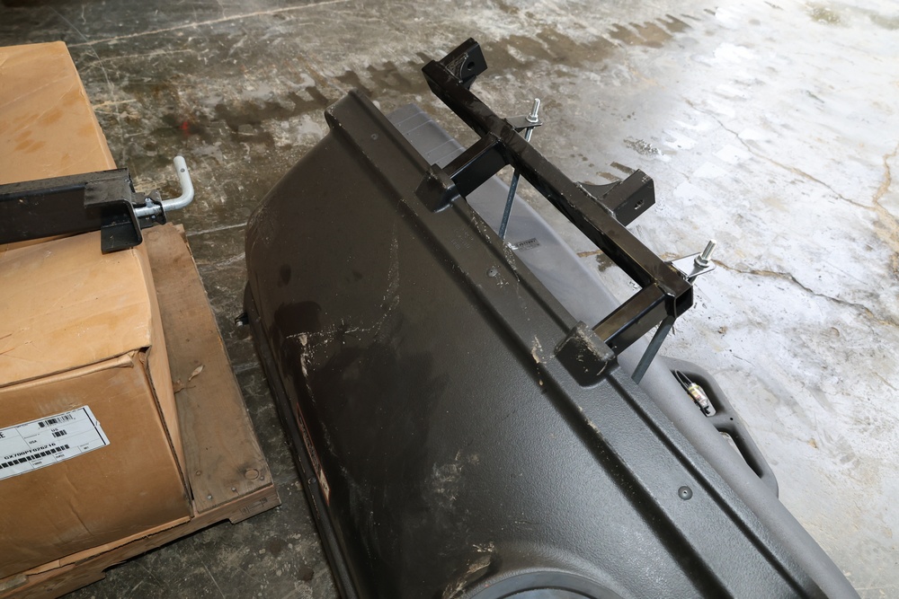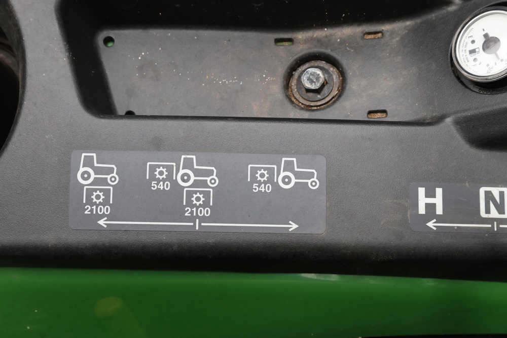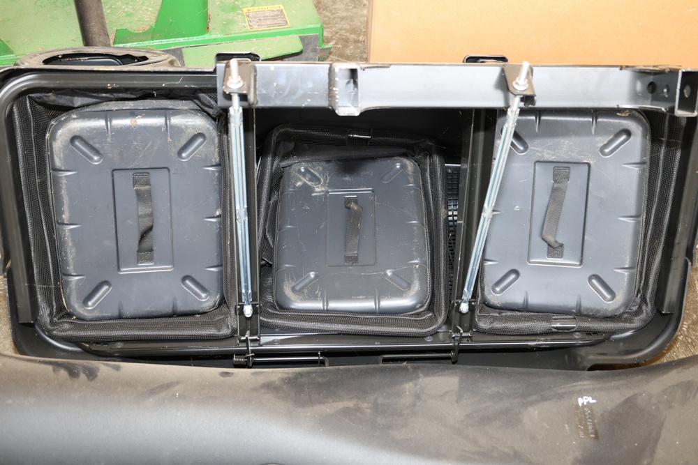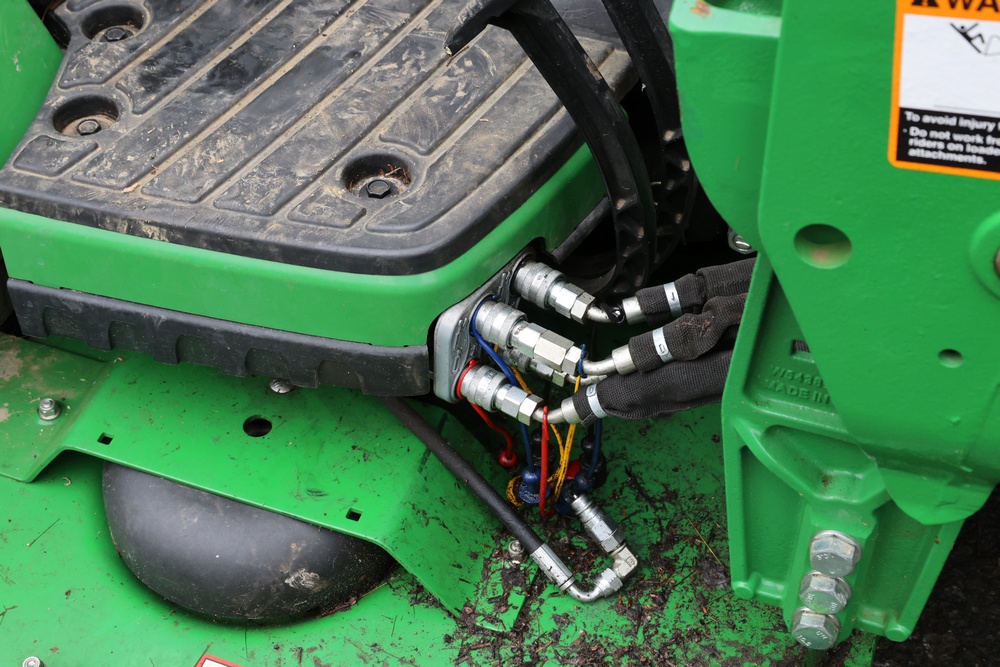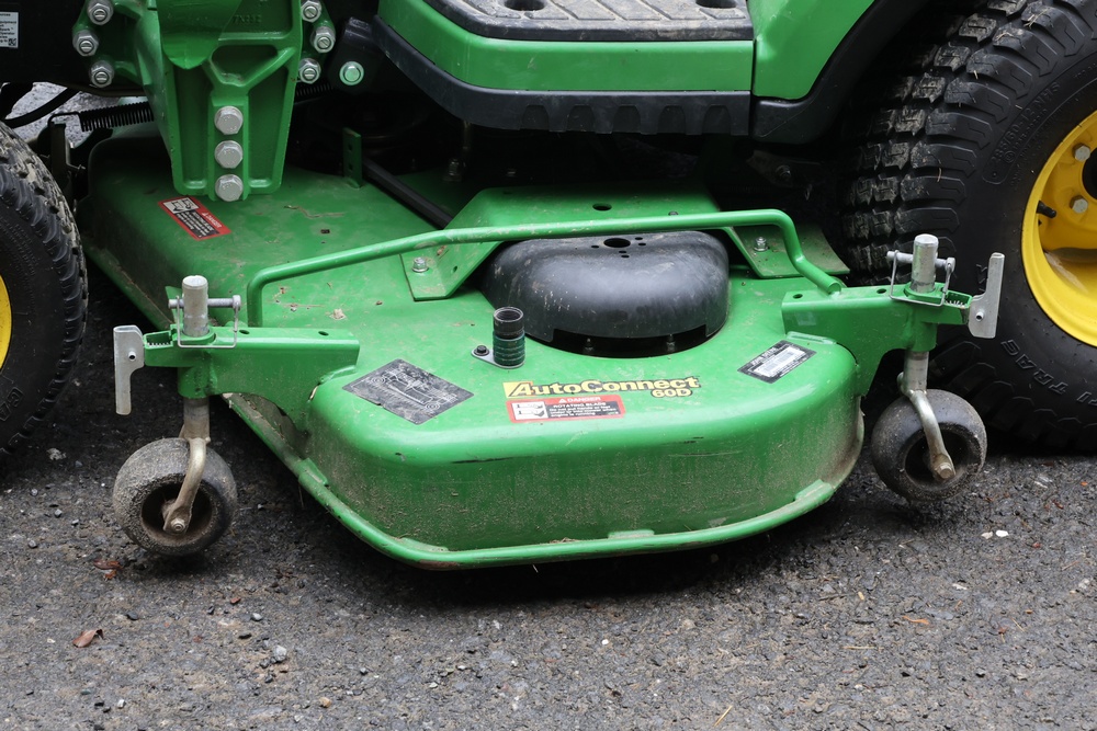 John Deere 1025R Sub-Compact Tractor. VIN: 1LV1025RHJJ153773. Hour meter reading: 145.4 hours (displayed). Equipped with a 120R front-end loader and mid-mount mower deck. The unit includes a rear weight box, new bagging system, quick attach Imatch, 47" snowblower, fork attachment, Frontier RC2048 rotary cutter, and rollover protection system. Exterior: Green and yellow finish with labeled John Deere branding. Assembled in the USA by Deere & Company, Moline, Illinois. Runs and operates as intended.