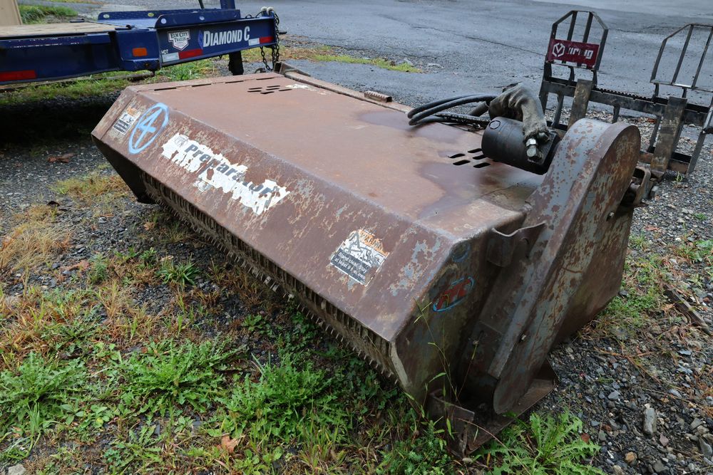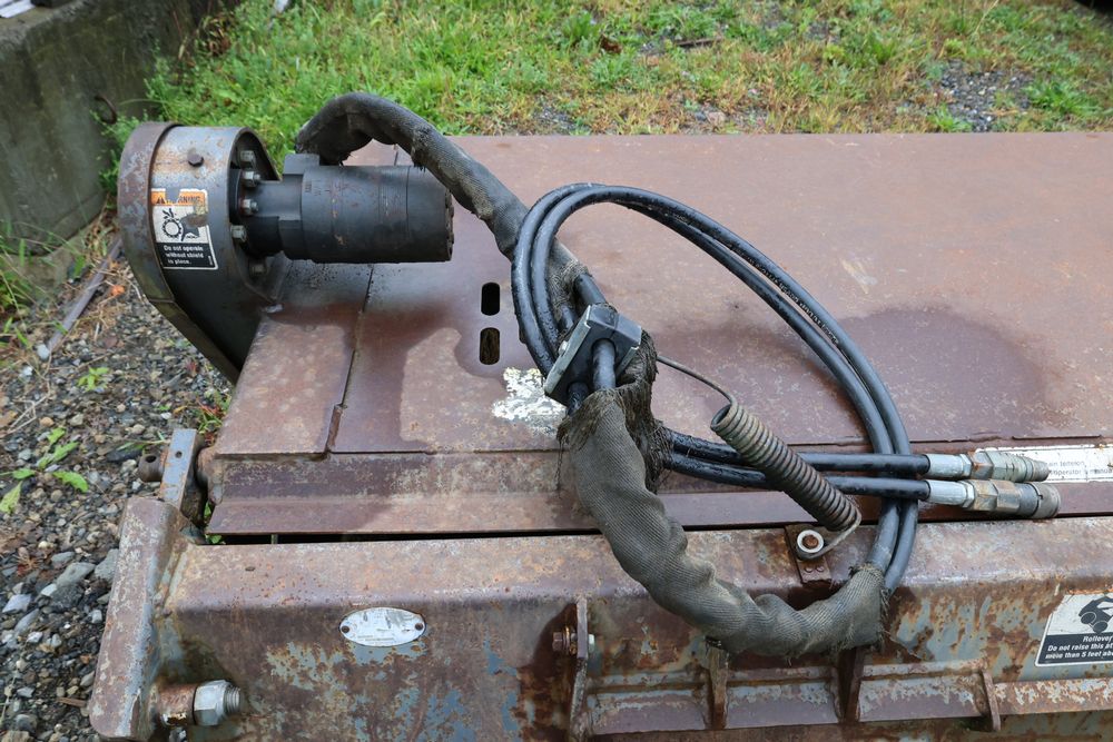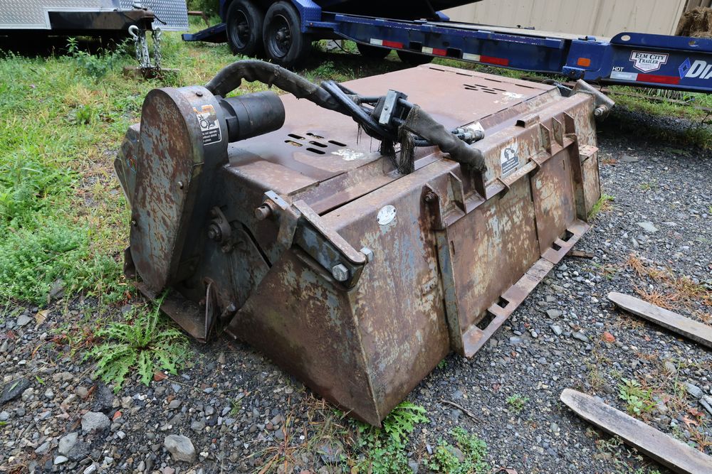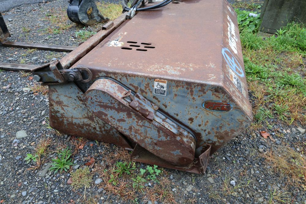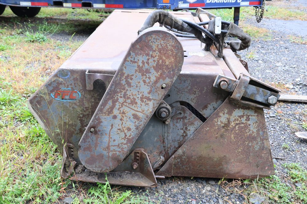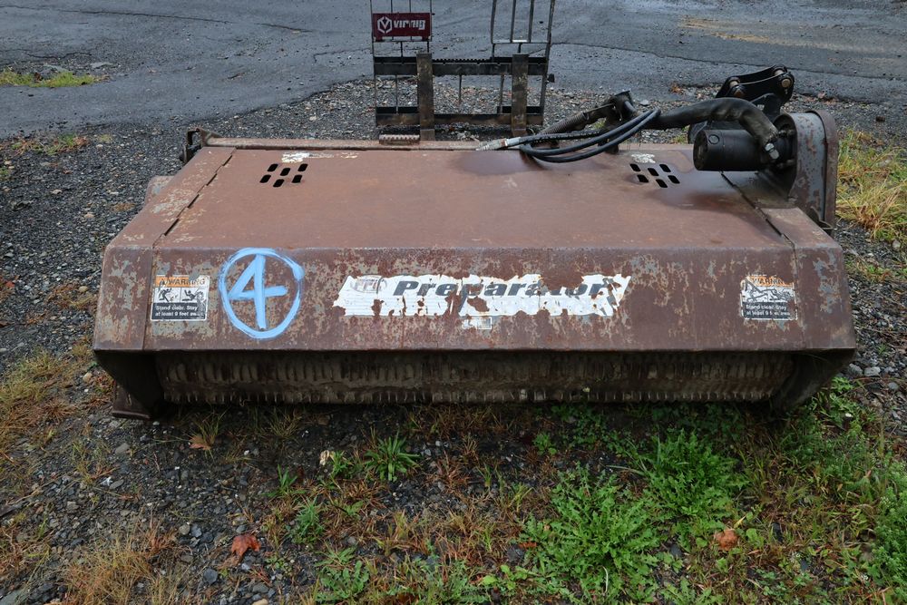 FFC Preparator 92-inch hydraulic rotary landscape rake attachment with integrated roller drum. Model: 92. Capacity: 12.5 cu ft. MFG Date: 05/31/2002. Unit features hydraulic drive motor with protective hose cover, quick-attach compatible mounting points. Designed for soil conditioning and seedbed preparation. Seller reports: operates as intended.