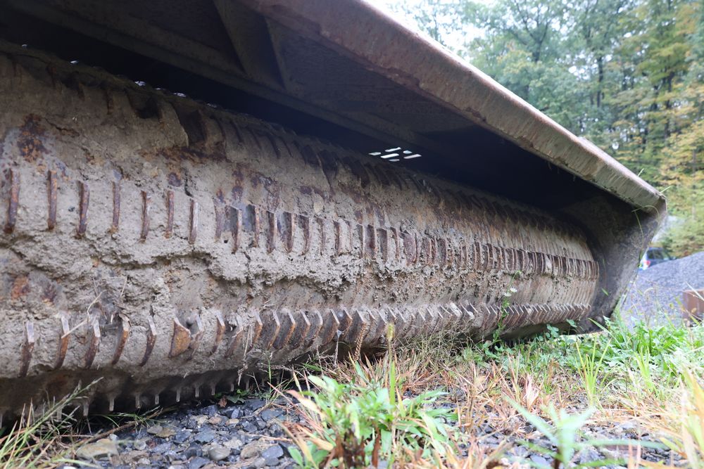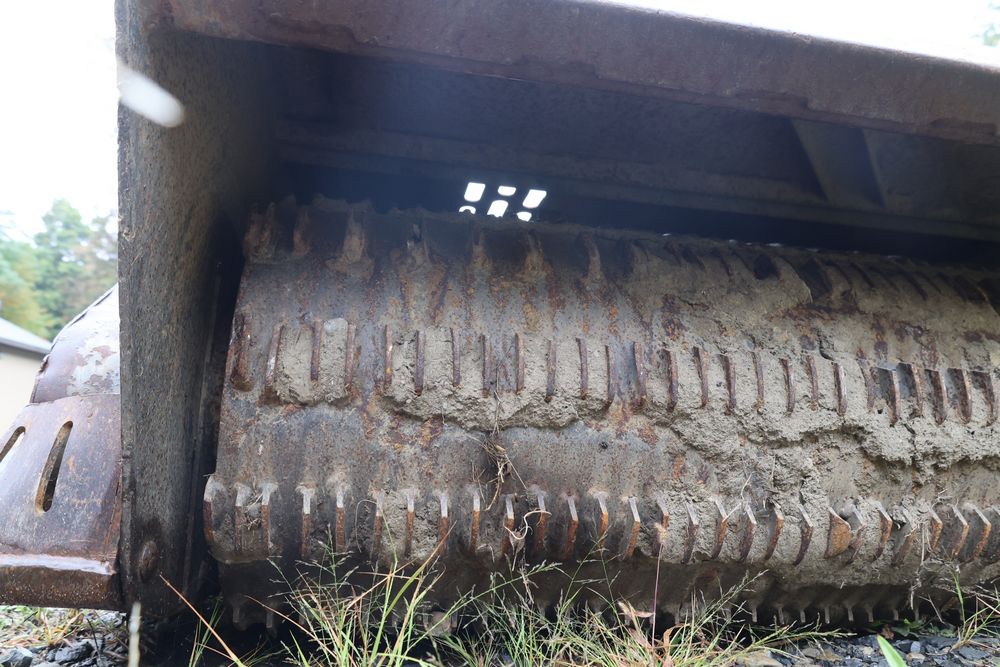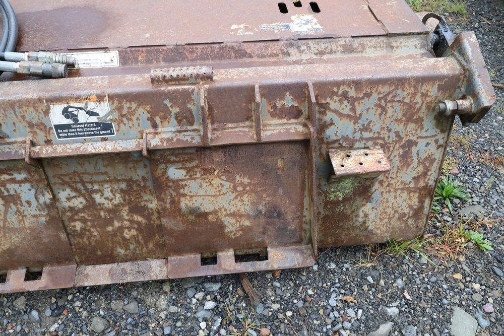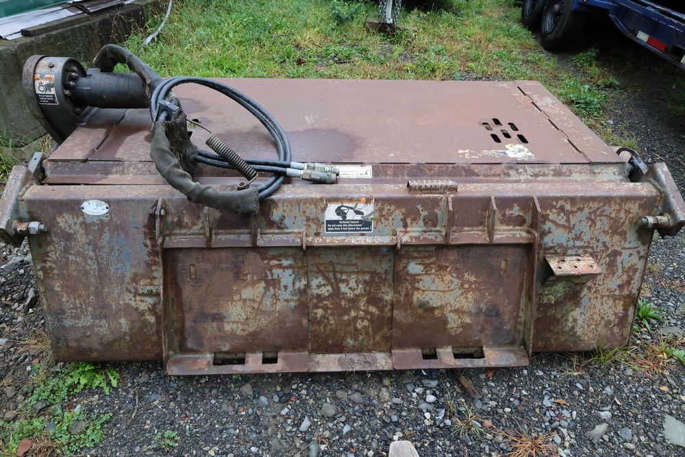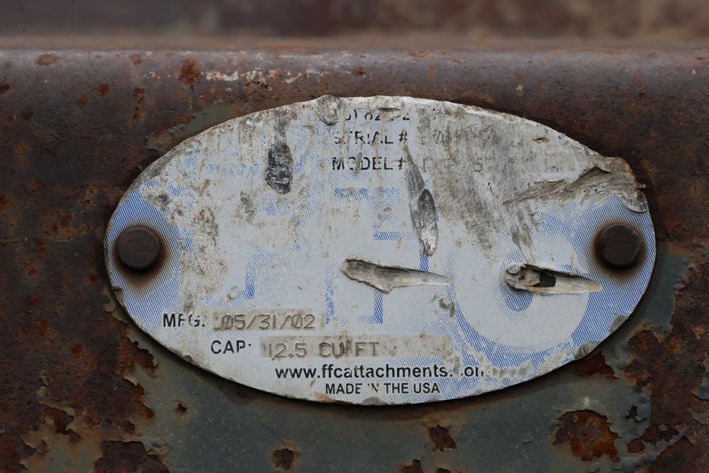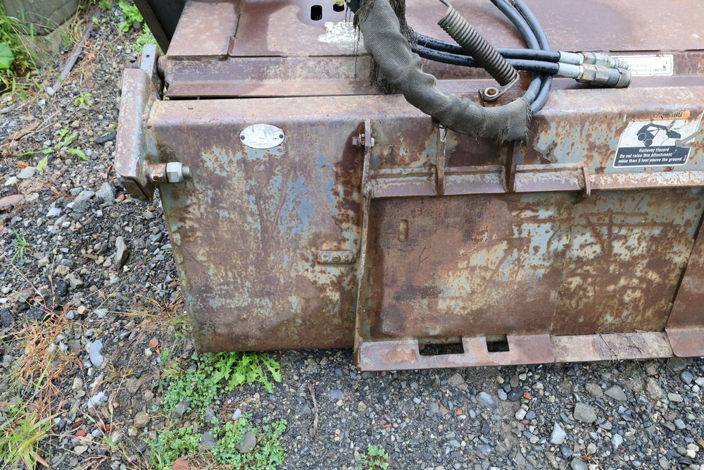 FFC Preparator 92-inch hydraulic rotary landscape rake attachment with integrated roller drum. Model: 92. Capacity: 12.5 cu ft. MFG Date: 05/31/2002. Unit features hydraulic drive motor with protective hose cover, quick-attach compatible mounting points. Designed for soil conditioning and seedbed preparation. Seller reports: operates as intended.