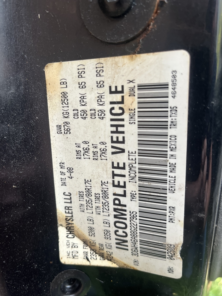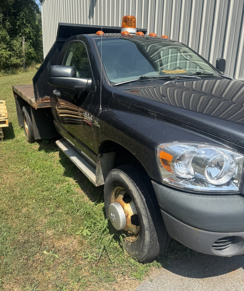 2008 Dodge Ram 2500 w/ Fisher 9’6” XV2 Plow; Runs and Drives, Seller reports transmission lines are leaking, Vin: 3D6WH46A88G227965, 39,597 Miles, 6.7L, V6 Diesel, 4x4.