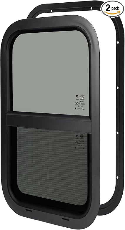 2 Pack RV Window,12" W x 22" H Vertical Sliding Replacement Cargo Trailer Windows for Camper Travel Trailer Utility Cargo Van Truck SUV,Fit 15/16" or 1-3/8" Thick Wall,Allow Error 1/16",DOT Approved