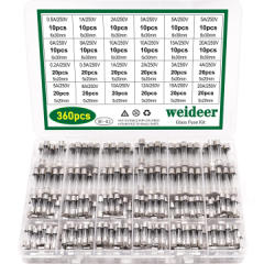 weideer 22 Values 360pcs Fast Blow Glass Fuses Assortment Kit 250V 0.5A 1A 2A 3A 5A 6A 8A 10A 15A 20A 6x30mm,250V 0.2A 0.5A 1A 2A 3A 4A 5A 8A 10A 12A 15A 20A 5x20mm Tube Fuses