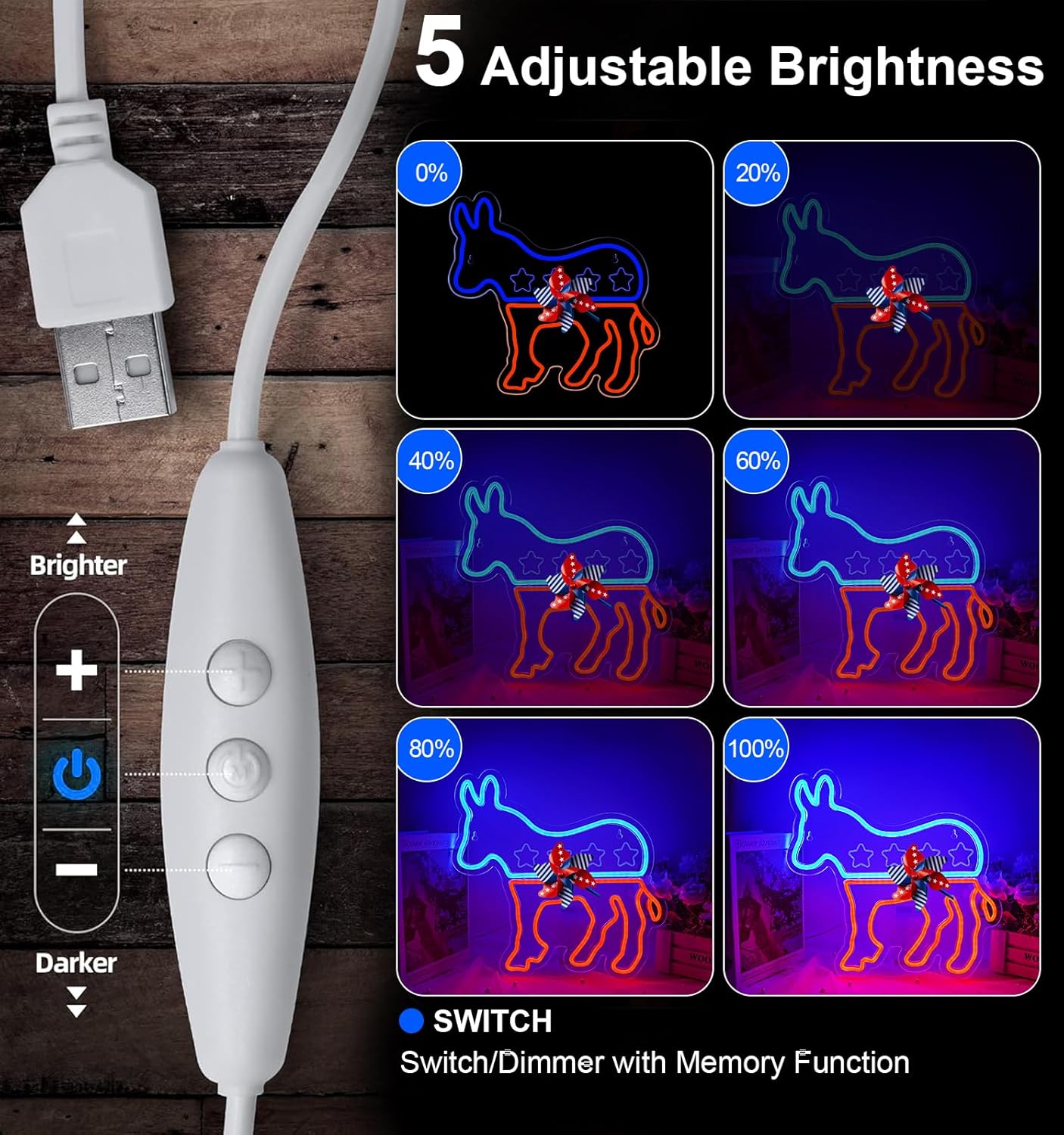 Neon Signs for Wall Decor,USB Powered USA Led Signs for Bedroom Wall Game Living Room,Democratic Party Neon Lights Lamp for Boy Girl Bedroom Decor,Animal Horse Light Up Signs for Man Cave Christmas