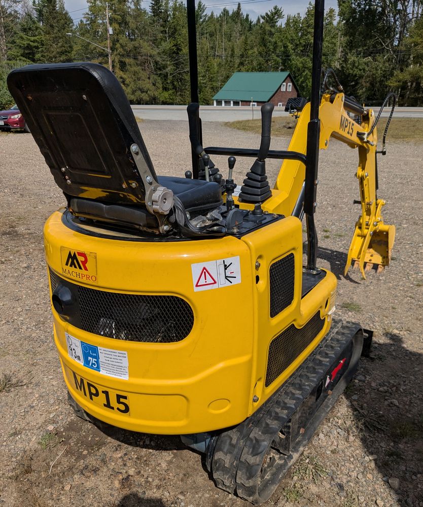 Items include 2024 GF Industry hydraulic mini excavator; 1992 28' work barge; 2017 Ram 2500 power wagon; 1997 Bobcat 751 skid steer; 14' dump trailer; 2000 dual axle utility trailer; 2010 BMW 528i; John Deere X320 garden tractor; Troy-Bilt Rototiller; Yard Machine Gold snow blower; manual tire changer; wooden Adirondack chairs; Gladiator storage cabinets/contents; tow-behind yard rake; Jonson 6hp boat motor; 2003 Artic Cat T660 turbo snowmobile; quick attach pallet forks; Fonney welder; Festool Cleantec tool set & more. Items are located in Long Lake, NY.