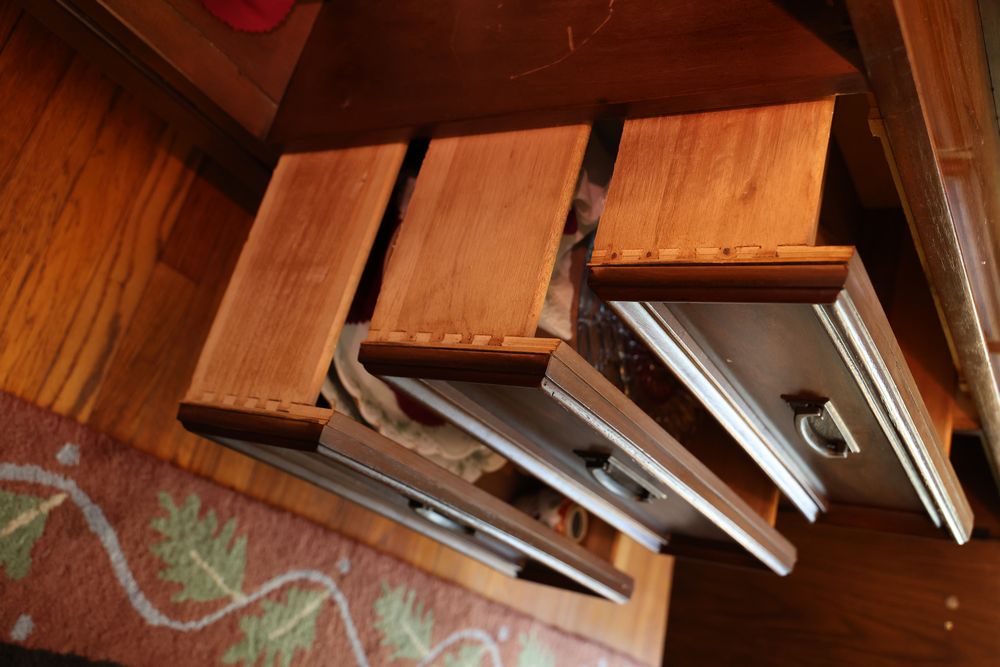 items include floral upholstered sofa set; rustic violin in case; Cub Cadet LT1042 Hydrostatic Drive lawn tractor; dinnerware/silver items by Lenox, Limoges & Oxford; Heywood-Wakefield bedroom set; Rockwell drill press; vintage metal ware; brass scale; wooden spinning wheel; Ridgid wet/dry vac; Werner 6' ladder; Samsung 55" LED HDTV; outdoor garden/patio furniture/decorations; MasterCraft jig saw living room furniture & more. Items are located in Hopewell Junction, NY.