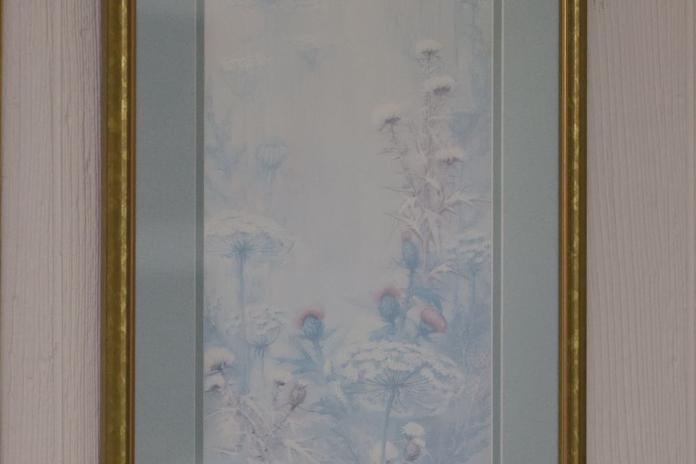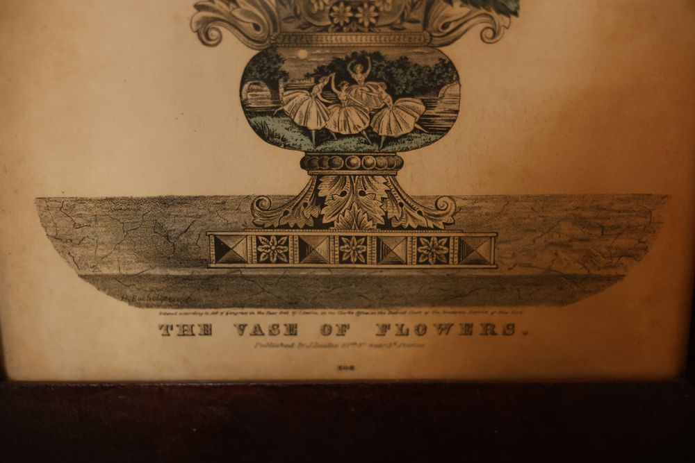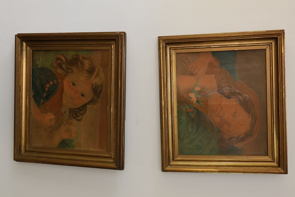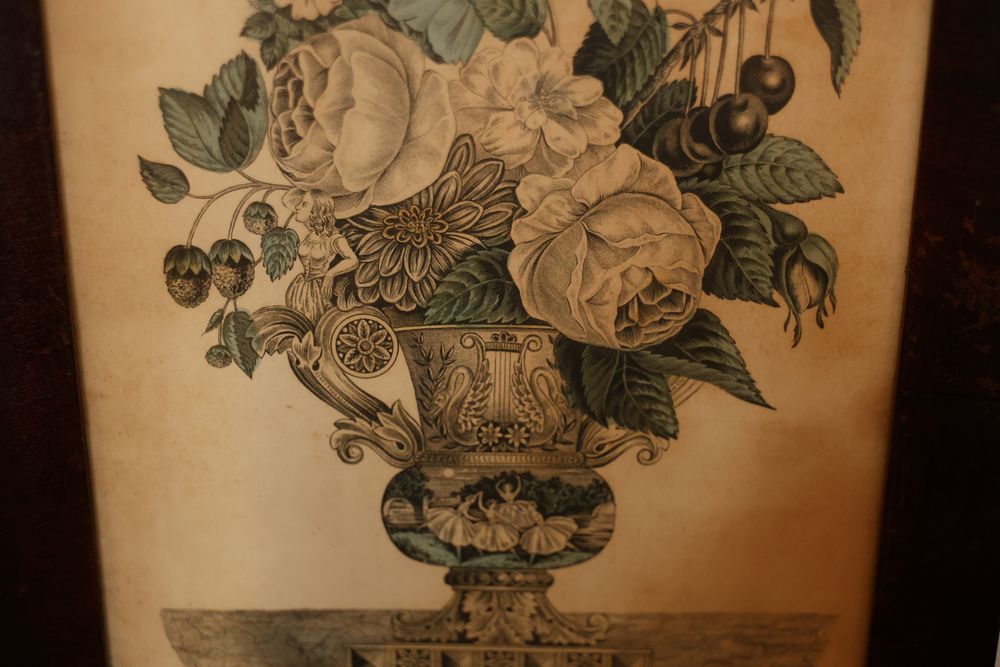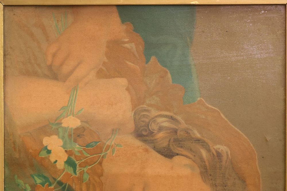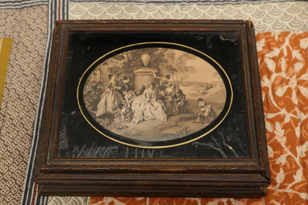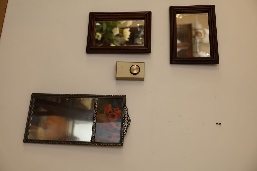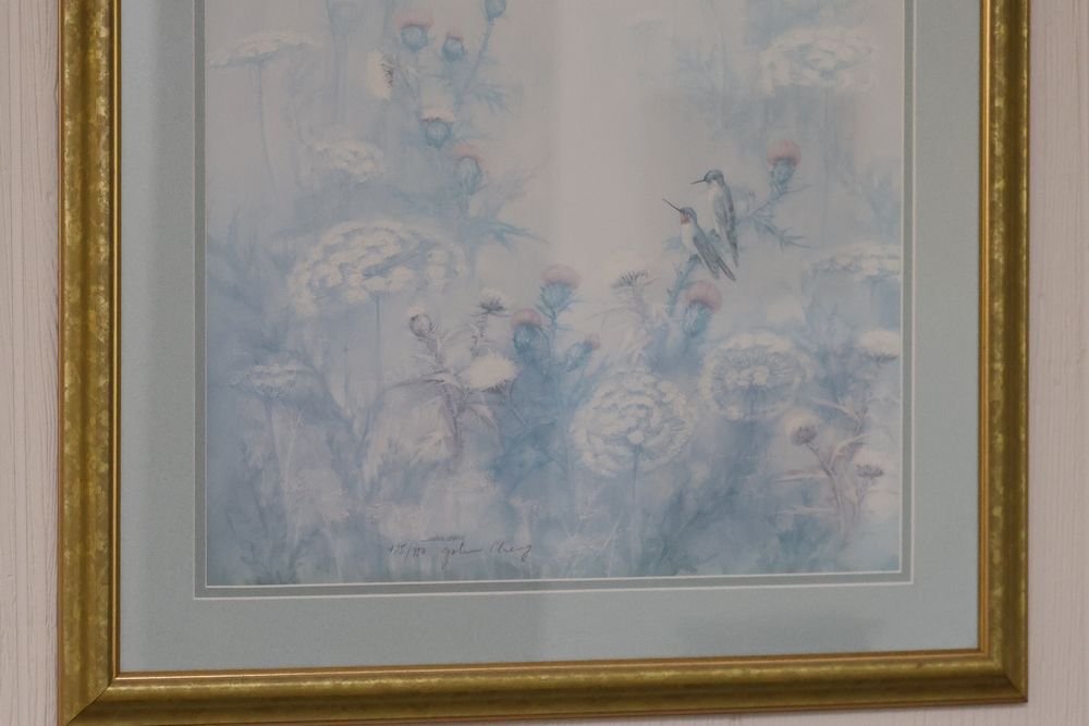 Wall Art With Mirrors Including Framed Prints and Paintings. This includes framed mirrors, art prints attributed to Wallace Nutting, landscapes, floral prints, and geometric designs. Frames feature materials like wood and metal, with varying styles and conditions. Buyer must take all. Pickup only.