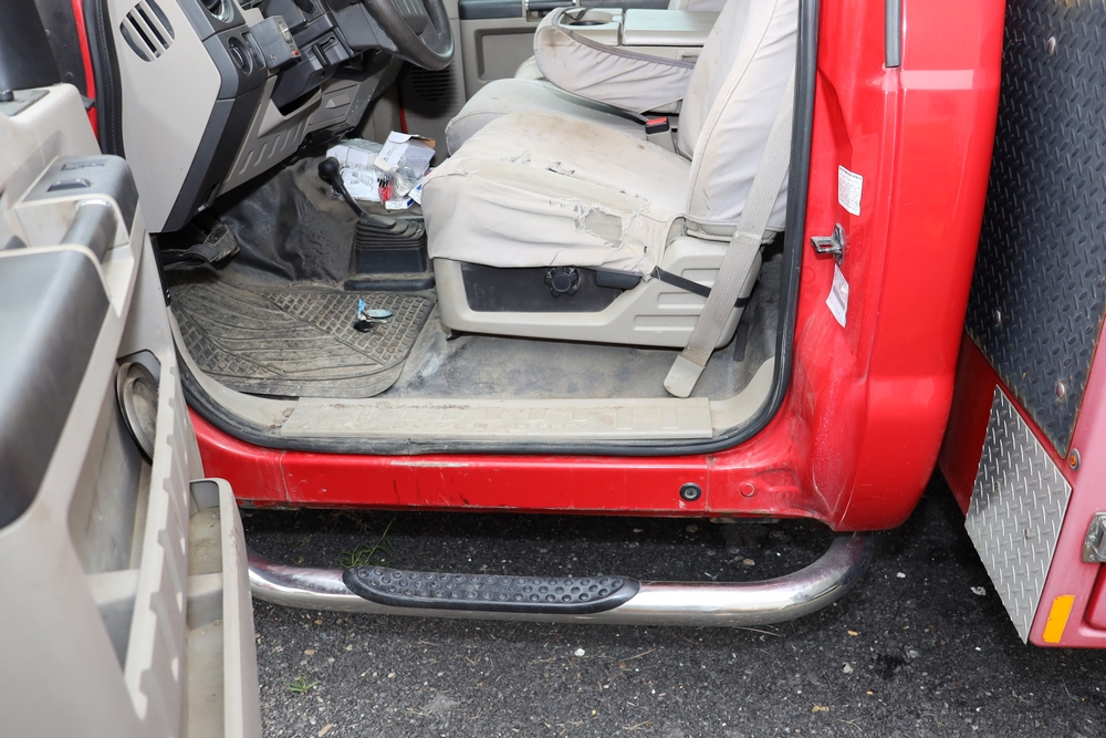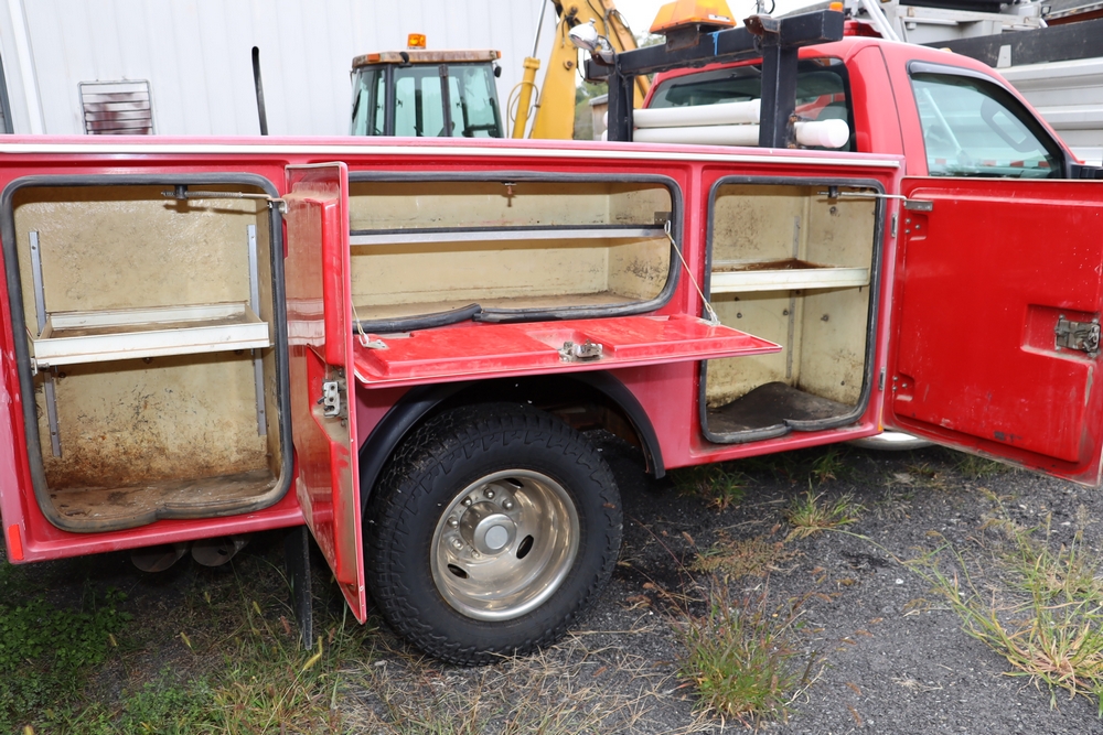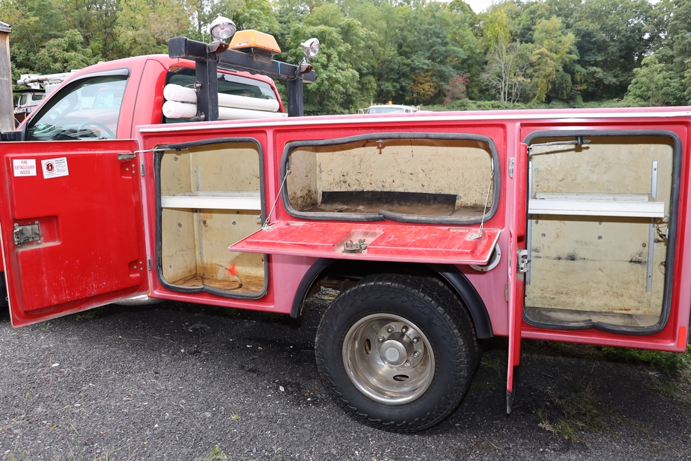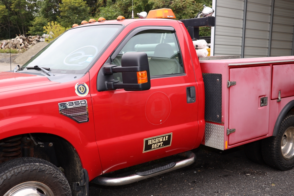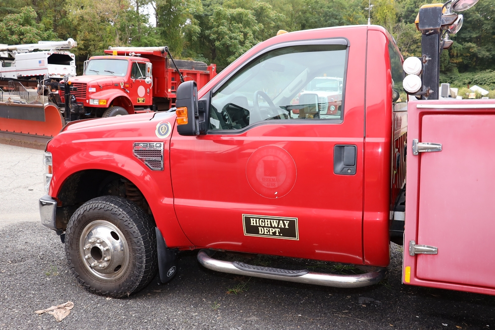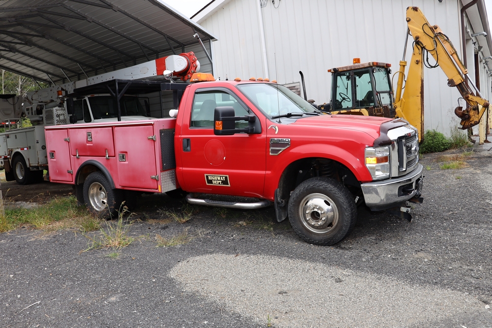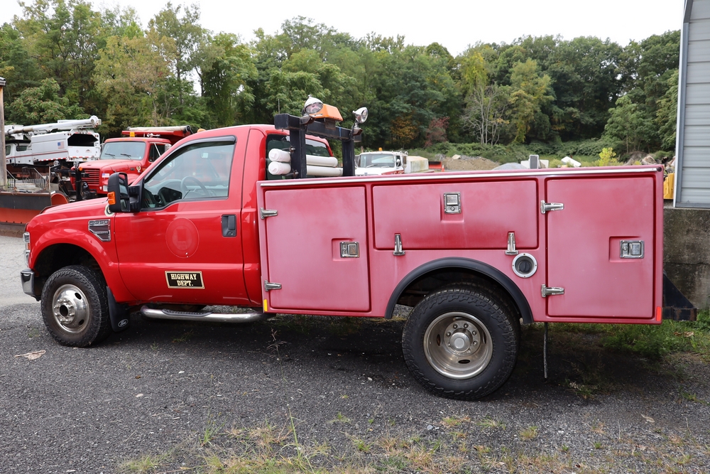 Items include 1986 Ford LN8000 Water Truck, 2008 Ford F-350 Super Duty Utility Truck with plow, and 1997 International 4800 Dump Truck 4X4. Items located in Poughquag, NY.