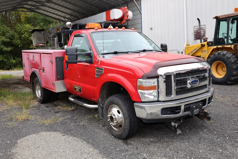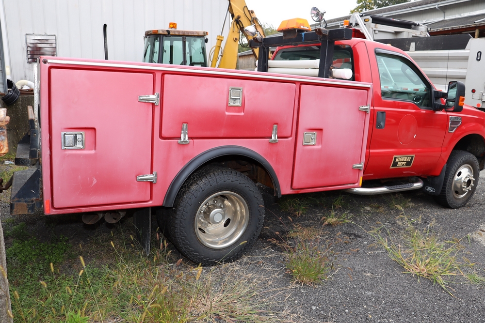 2008 Ford F-350 Super Duty Utility Truck. VIN: 1FDWF37R08EA02193. Body: Chassis 2D. Engine: Power Stroke 6.4L V8 CRDI Turbo Diesel. Odometer reading: 82,395. Astoria service body, Western 8.5' plow. Seller reports: Runs, drives, operates, turbo noise. Title & key available.