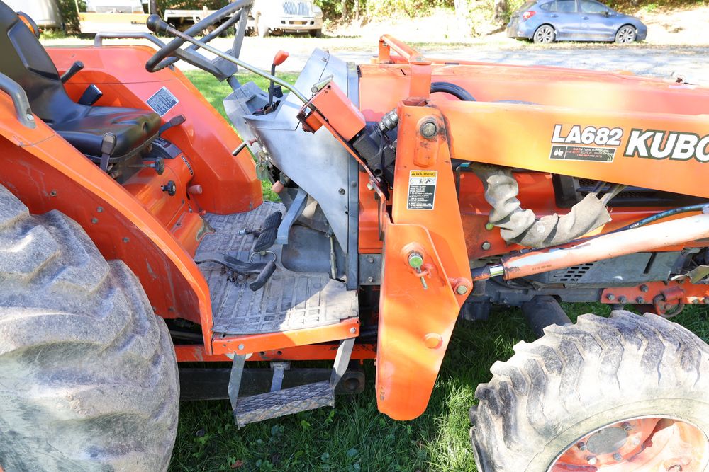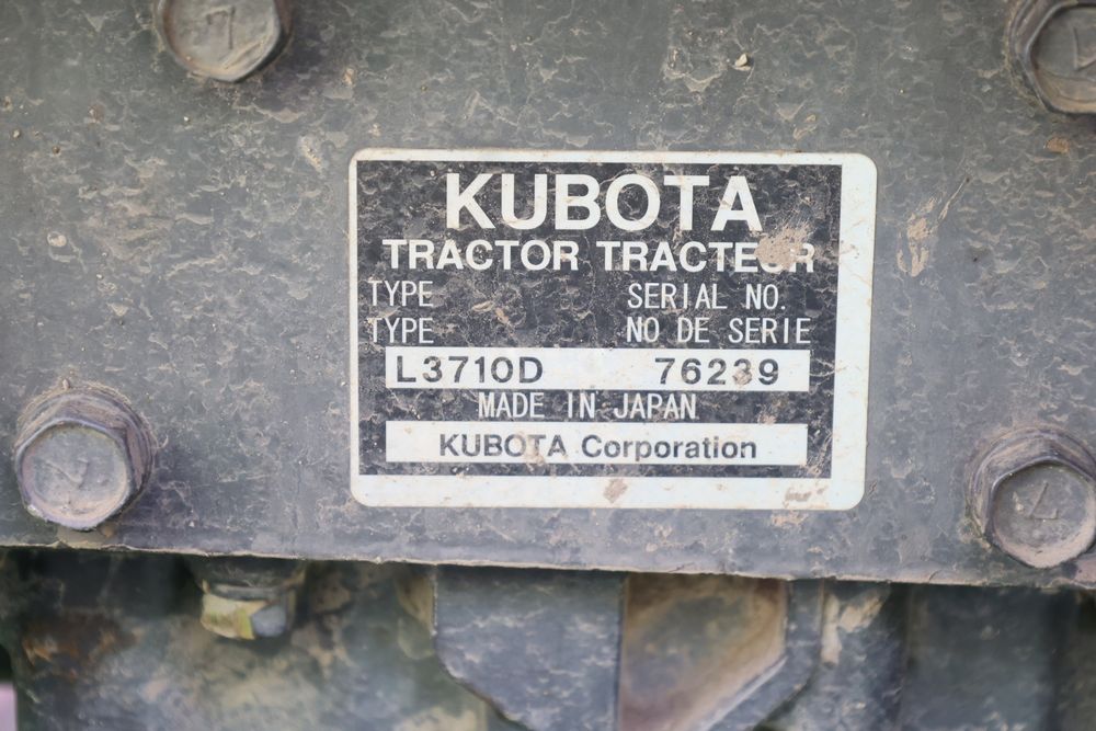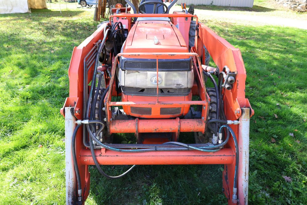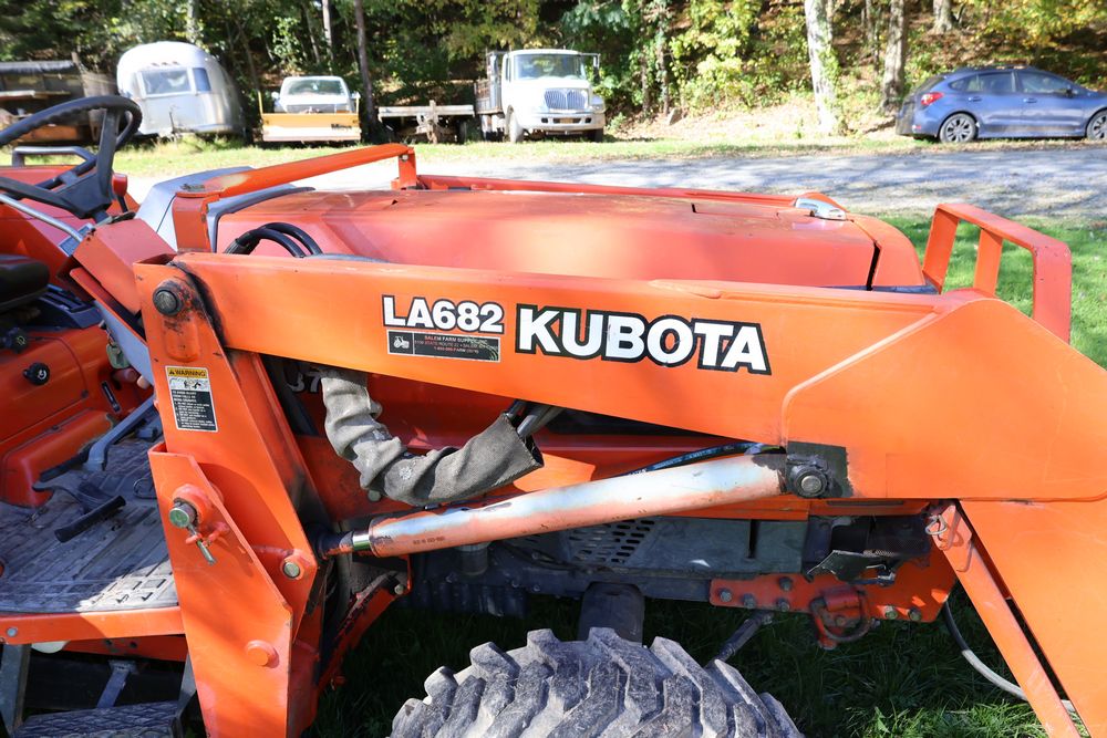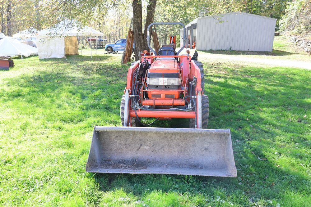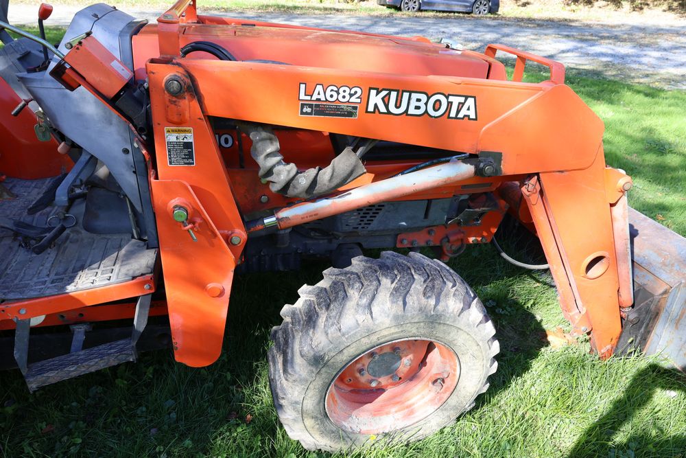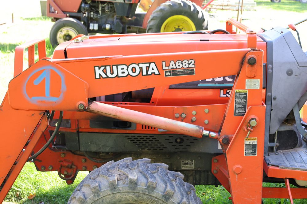 Kubota L3710 HST tractor with Kubota LA682 front end loader with quick detach bucket, 4WD, hour meter reading 1238, and Woods 9000 ground breaker back hoe. Operates as intended. Hour will be slightly higher at pickup. This must be picked up on 10/25 after the other auction items have been removed.
