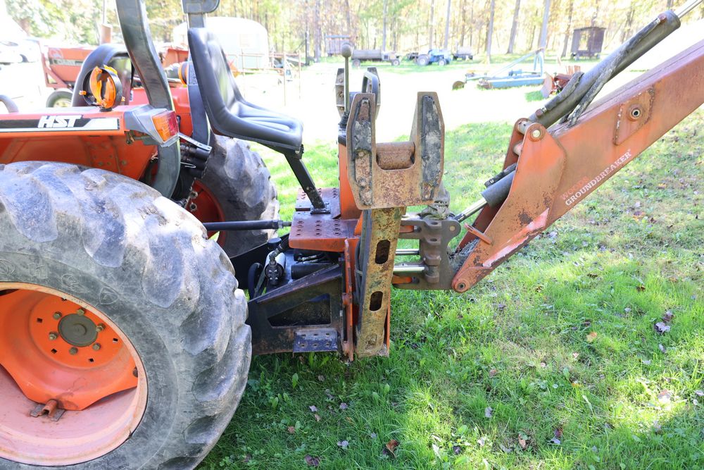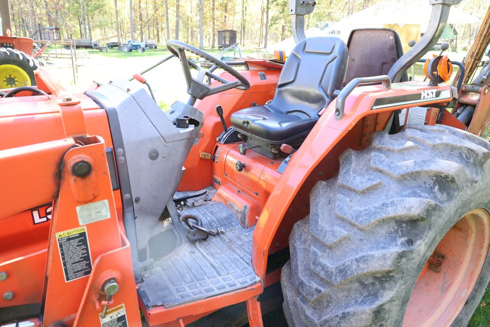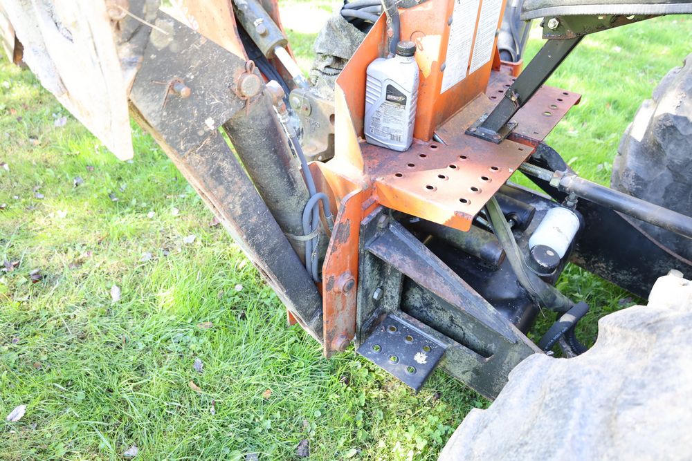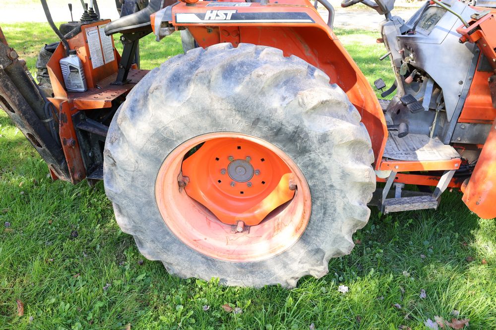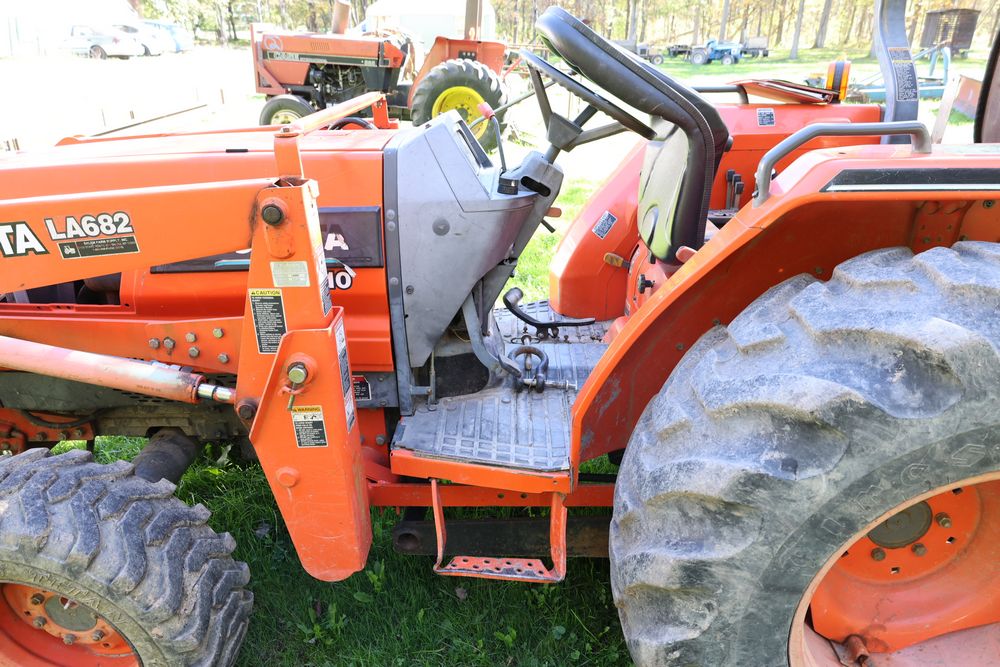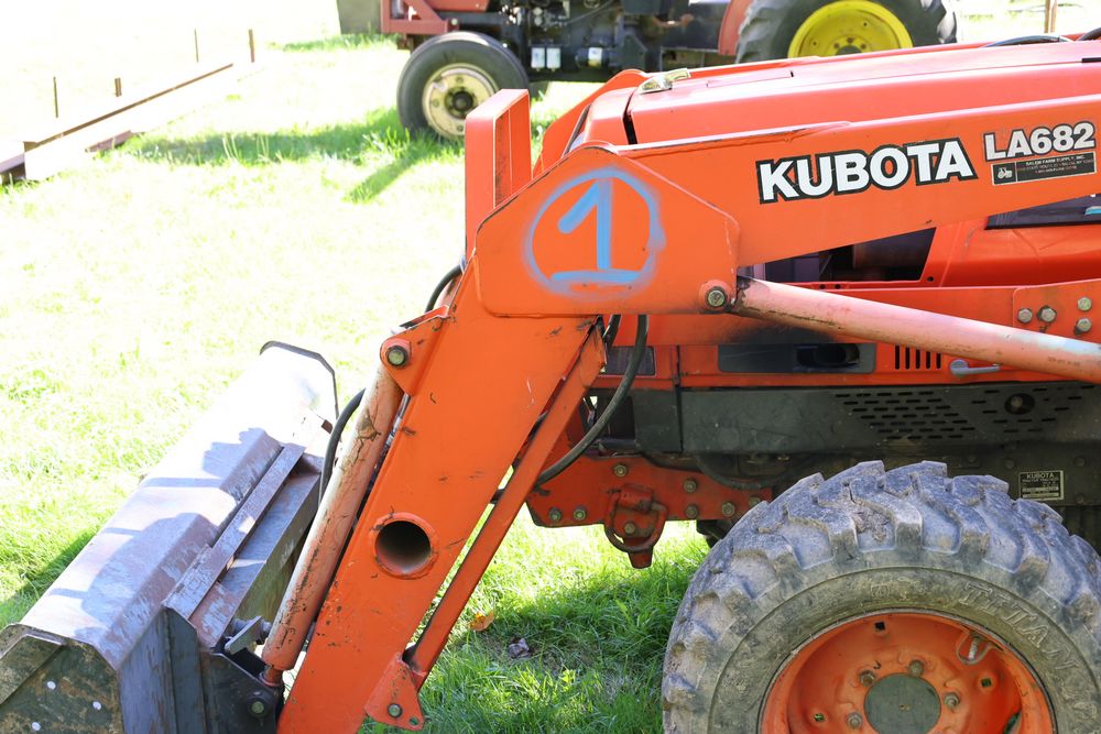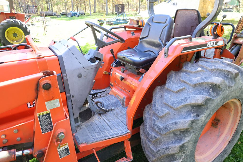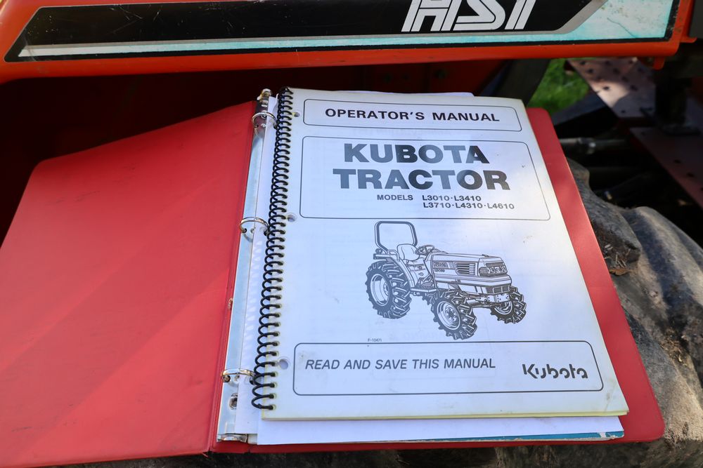 Kubota L3710 HST tractor with Kubota LA682 front end loader with quick detach bucket, 4WD, hour meter reading 1238, and Woods 9000 ground breaker back hoe. Operates as intended. Hour will be slightly higher at pickup. This must be picked up on 10/25 after the other auction items have been removed.