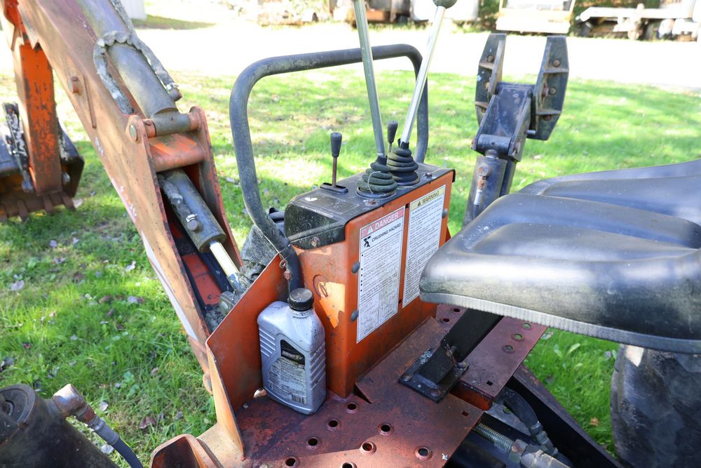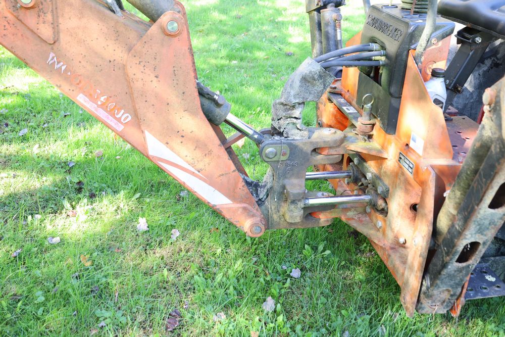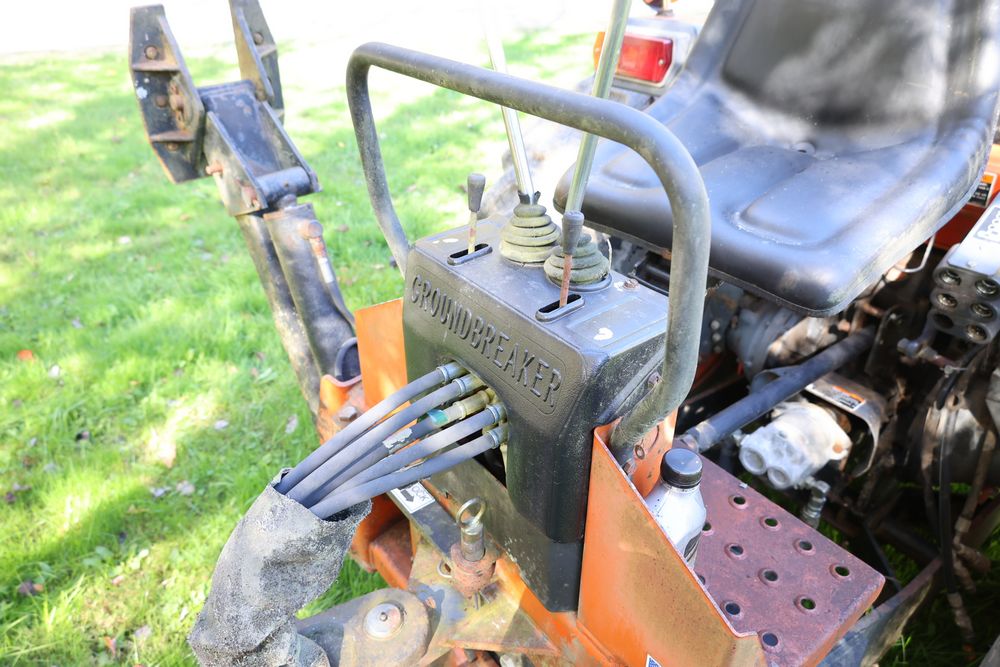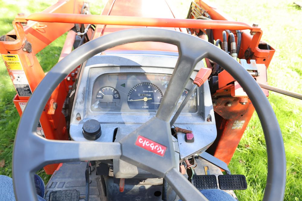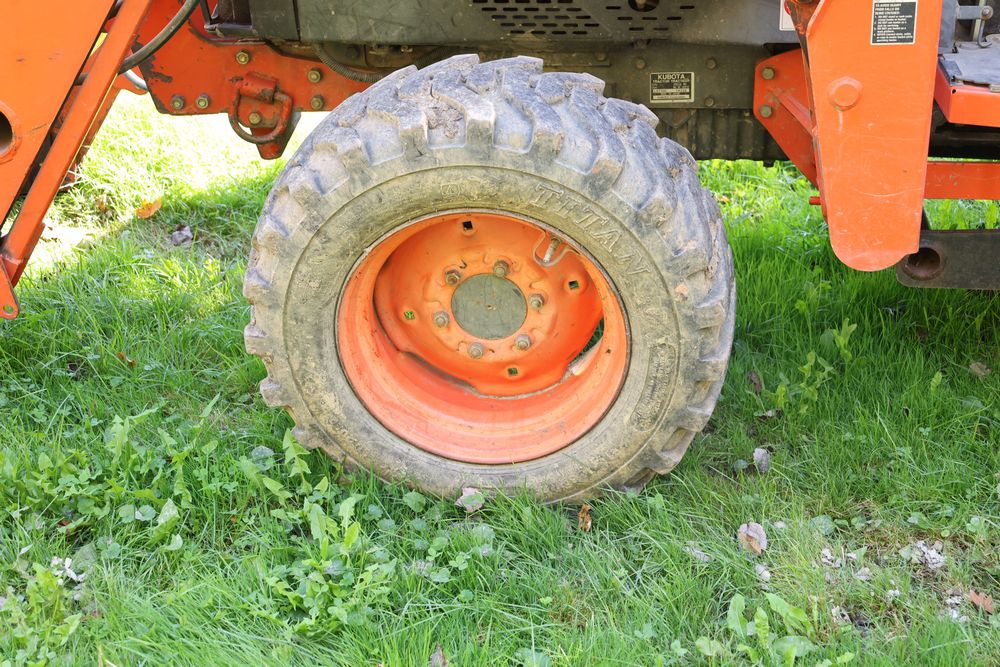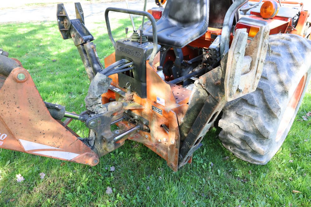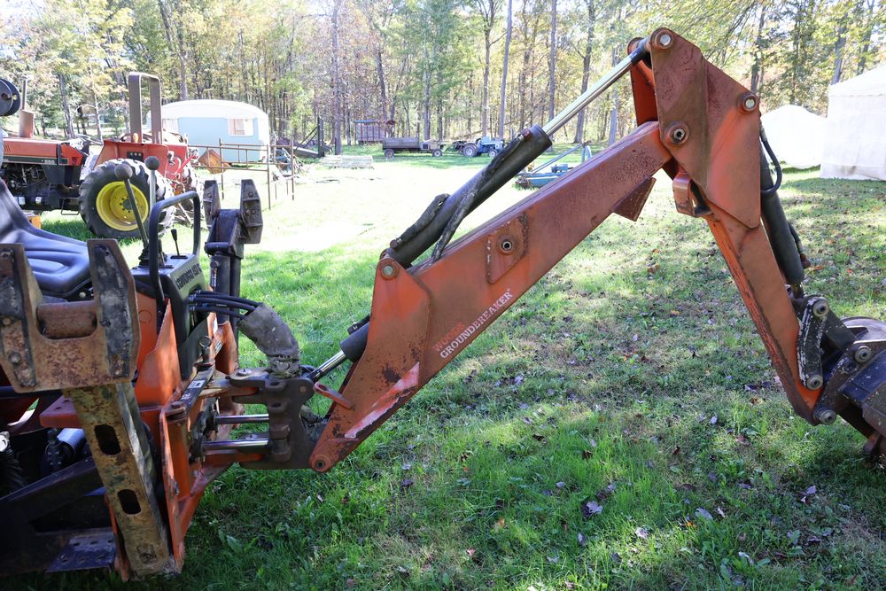 Kubota L3710 HST tractor with Kubota LA682 front end loader with quick detach bucket, 4WD, hour meter reading 1238, and Woods 9000 ground breaker back hoe. Operates as intended. Hour will be slightly higher at pickup. This must be picked up on 10/25 after the other auction items have been removed.