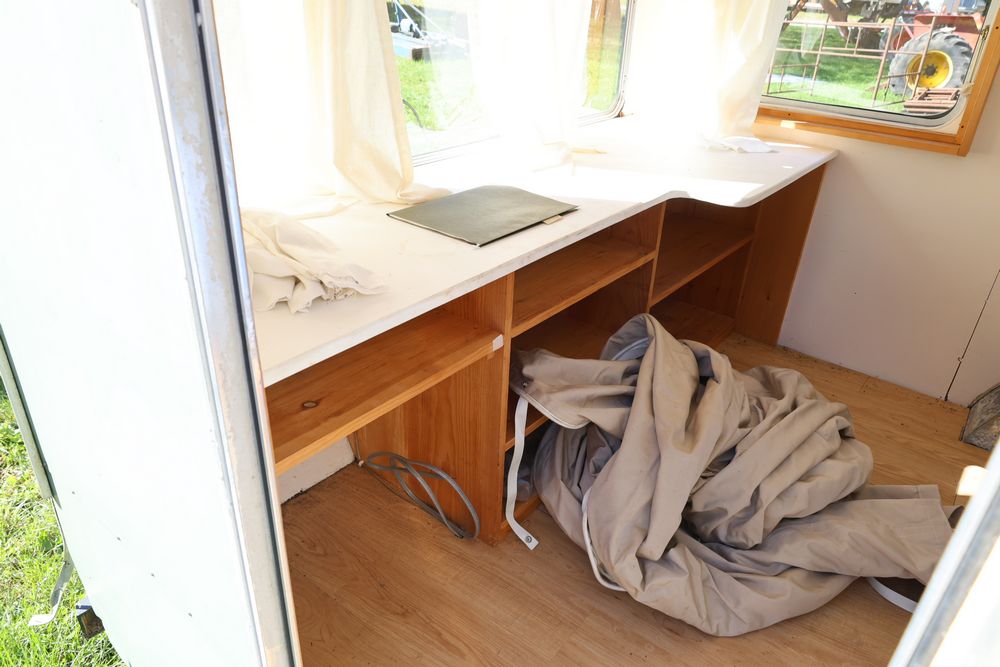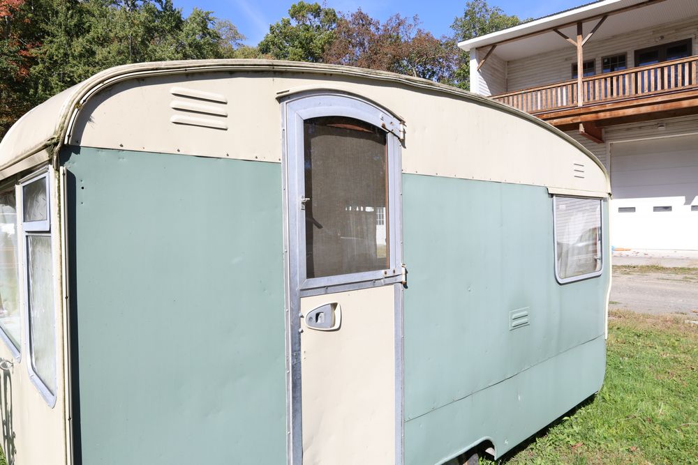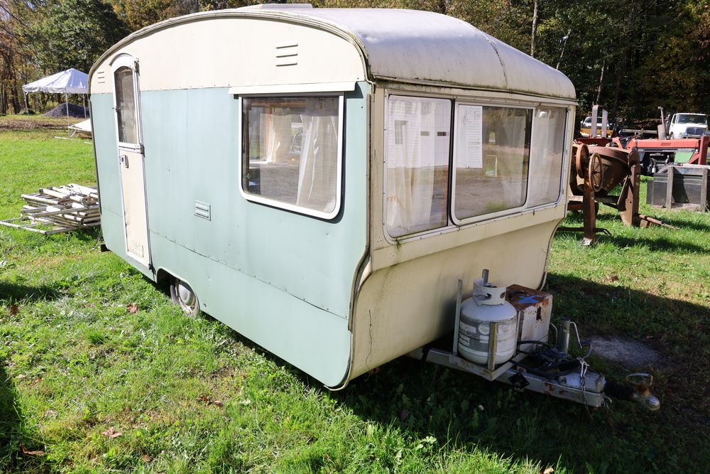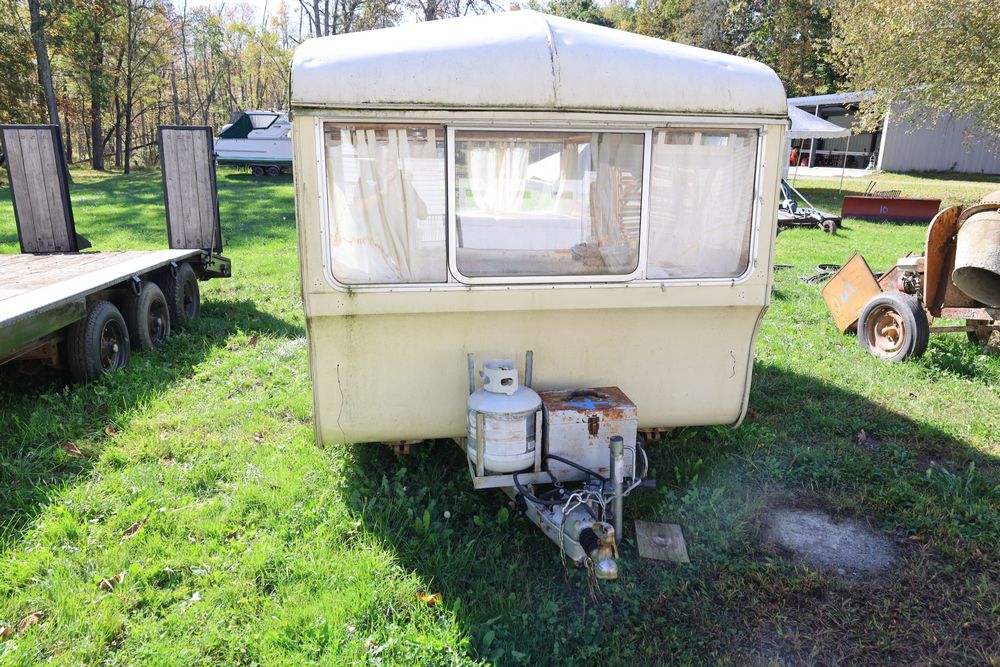 15' English travel trailer with 12' room. Seller reports the registration had been lost. No paperwork available.