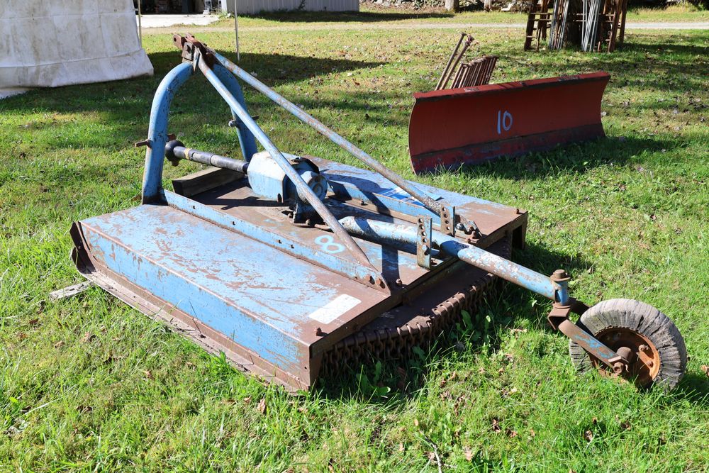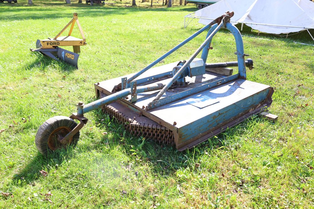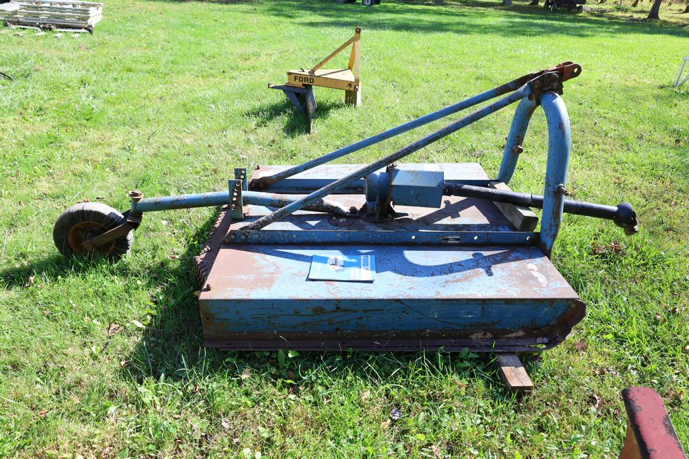 Ford model 909 5' rotary cutter industrial brush hog with protection chains front and rear, slip clutch. Seller reports: In working condition.