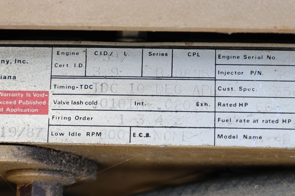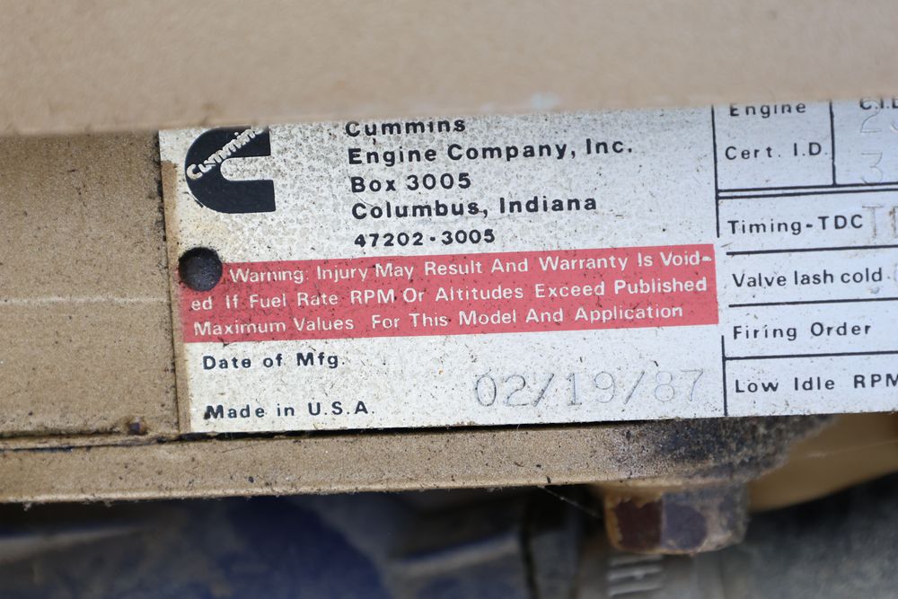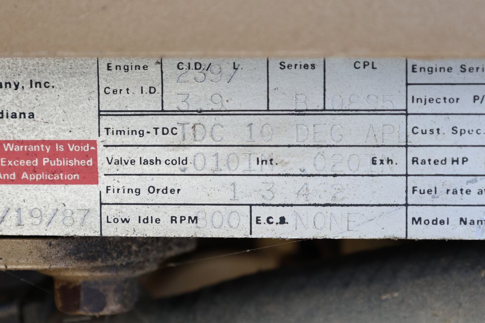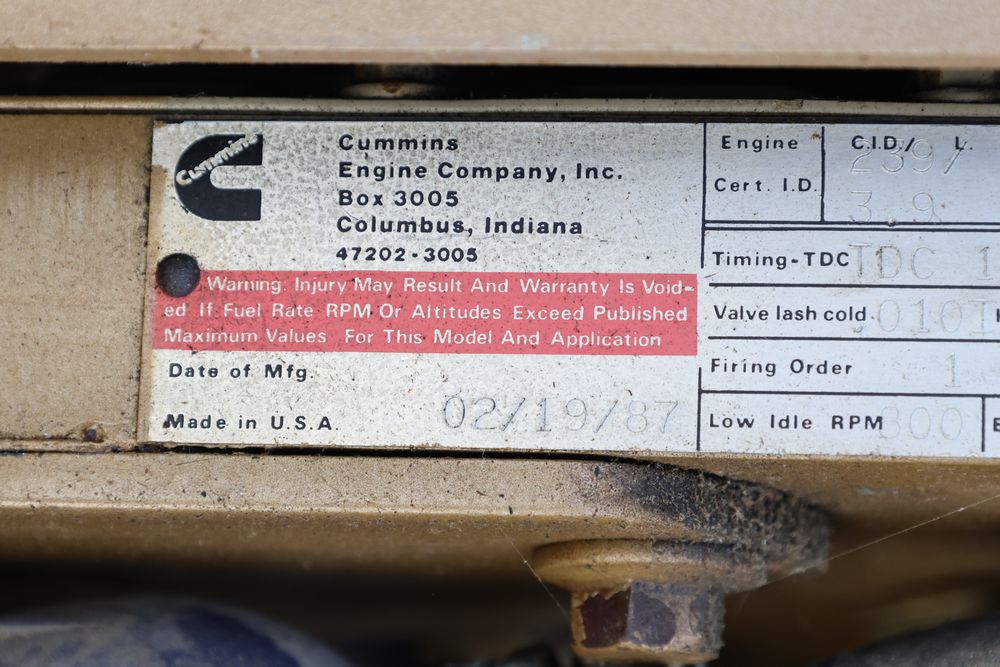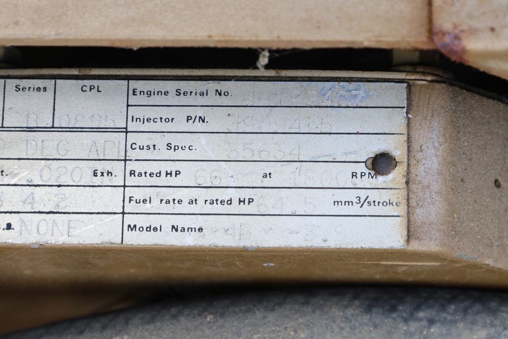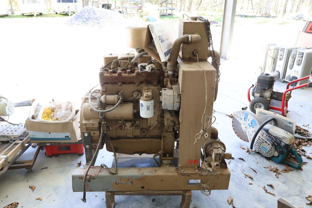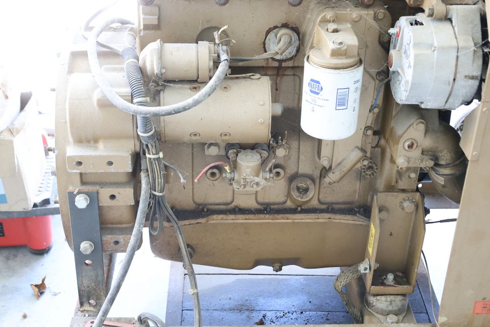 Cummings 3.9L 4BT inline four cylinder diesel engine removed from a stand by generator with the hr. meter reading 300 plus hours. Seller reports complete and bench tested.