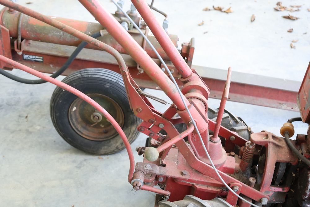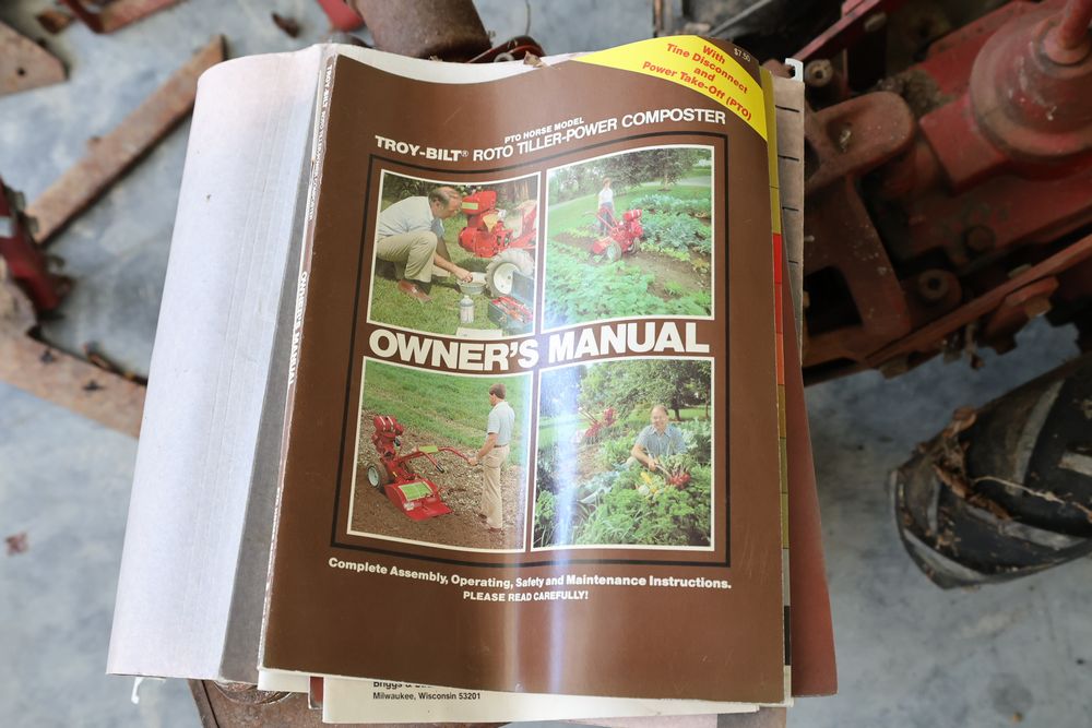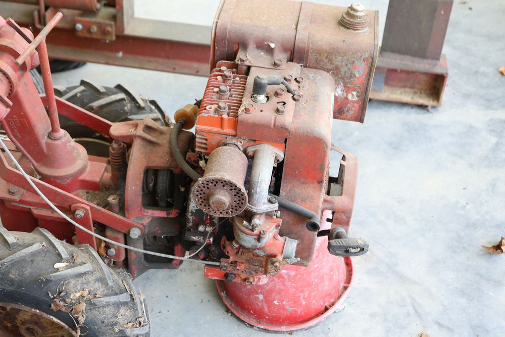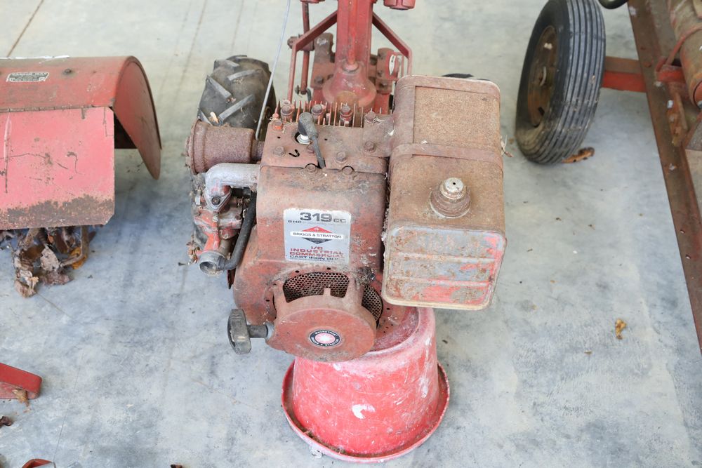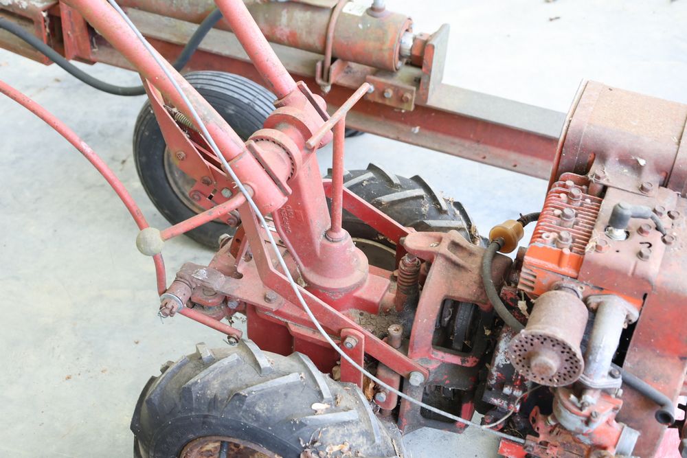 TroyBilt power unit with log splitter, power rotary cultivator, cultivator, etc. Seller reports in working condition.