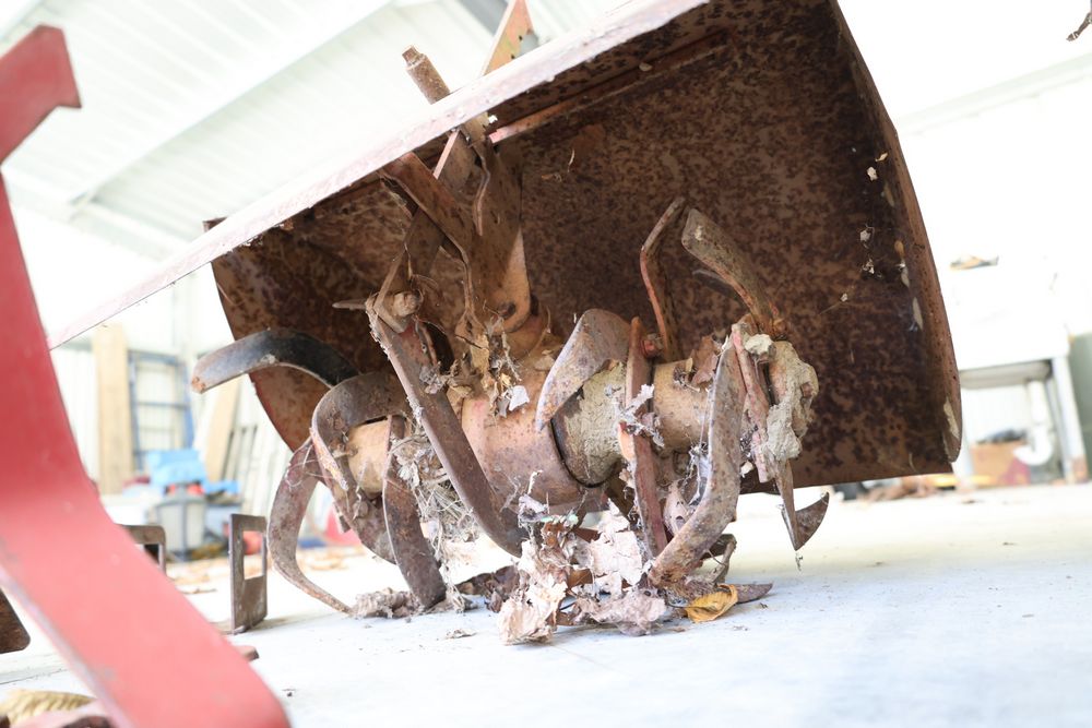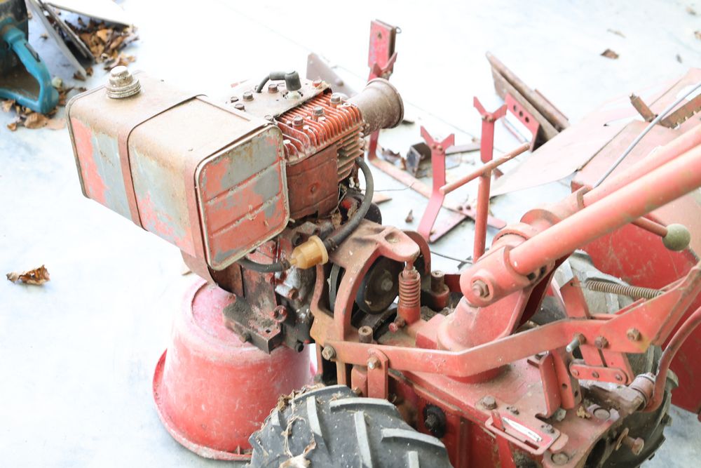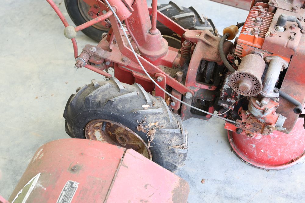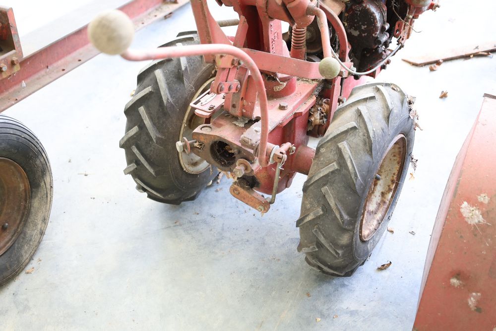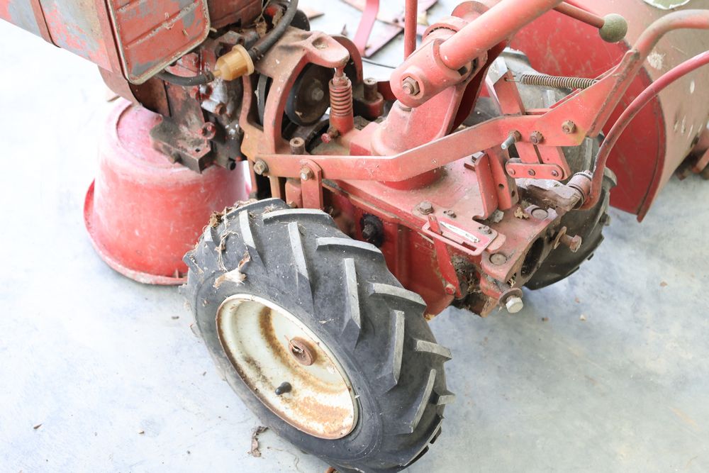 TroyBilt power unit with log splitter, power rotary cultivator, cultivator, etc. Seller reports in working condition.