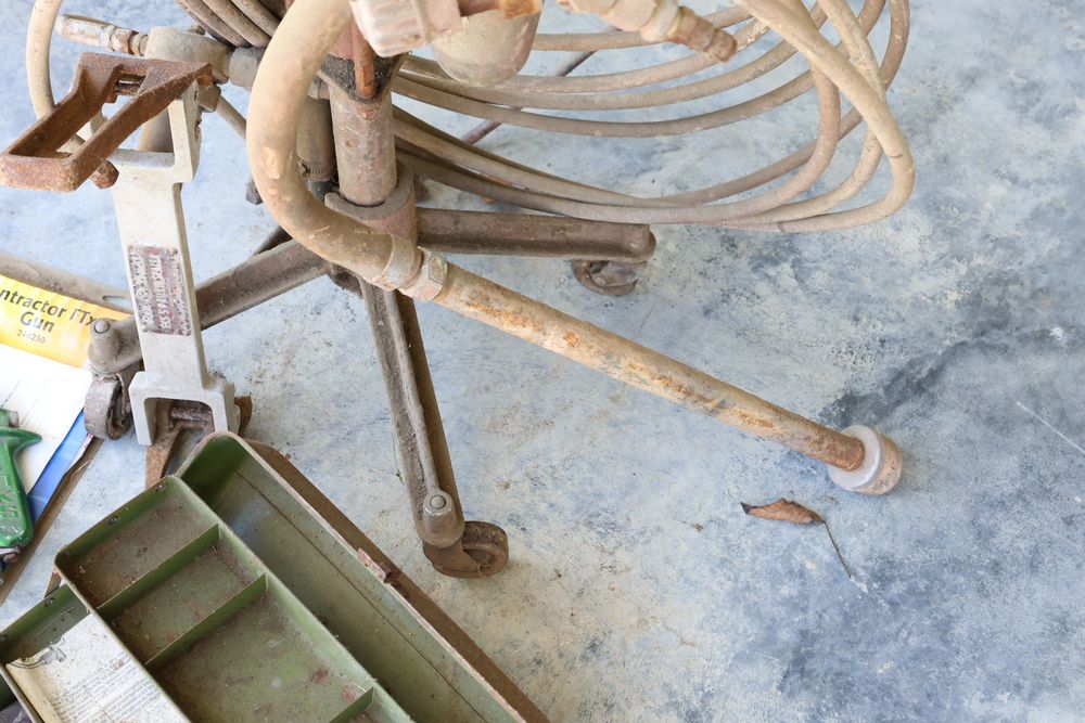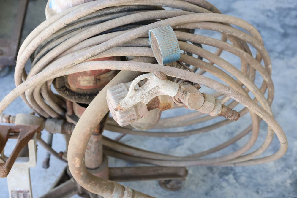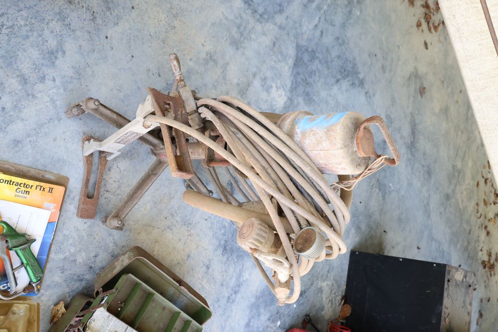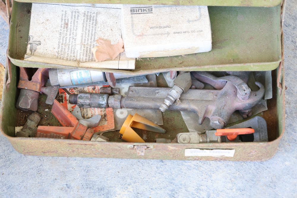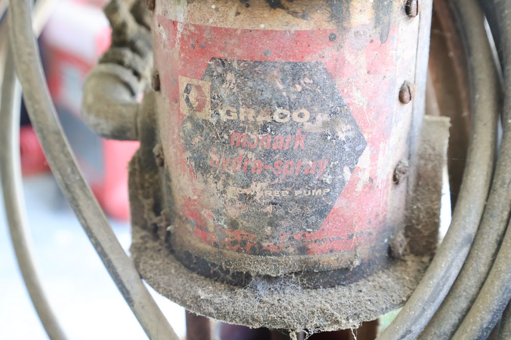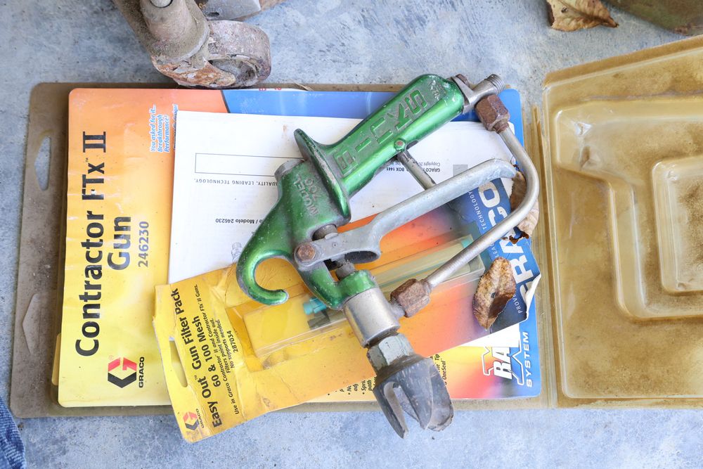 Graco Monarch airless paint sprayer with assorted painting supplies and Graco gun. Seller reports: not used in many years, condition unknown.