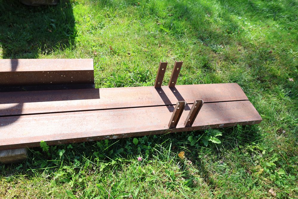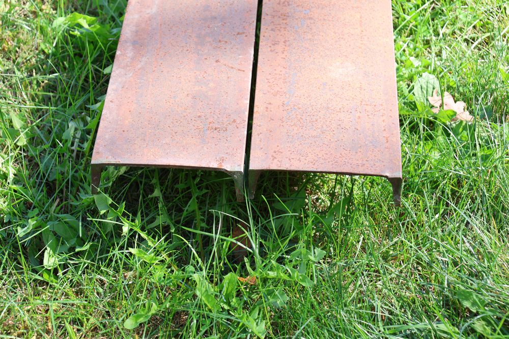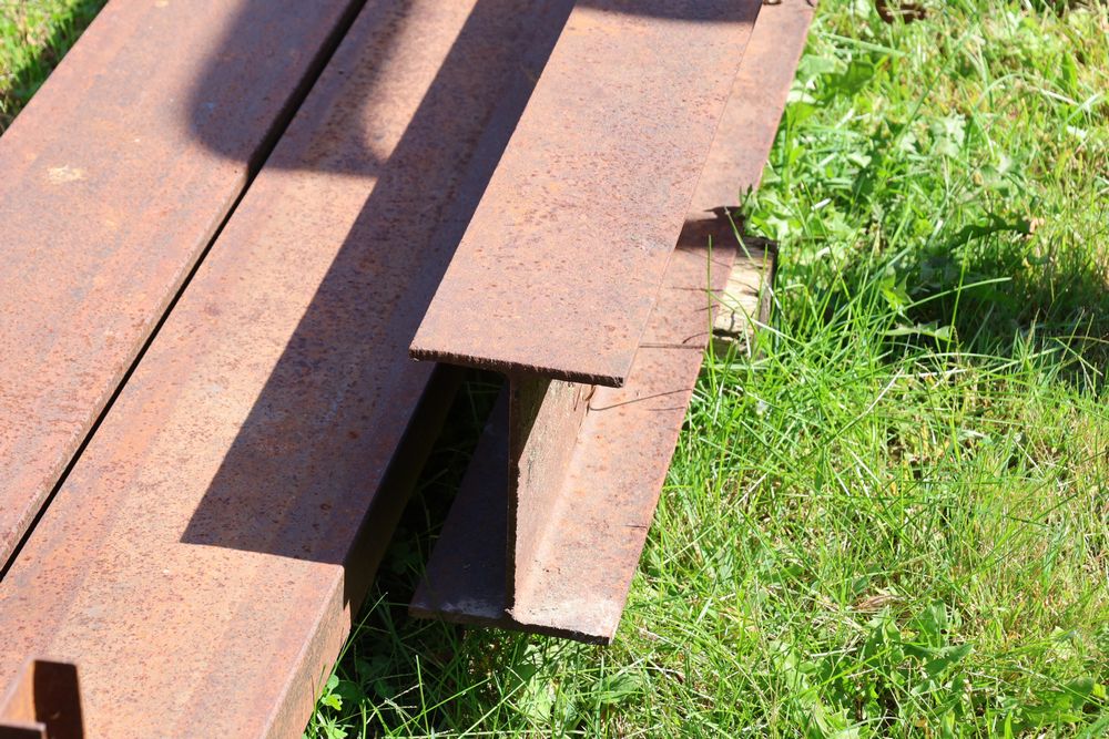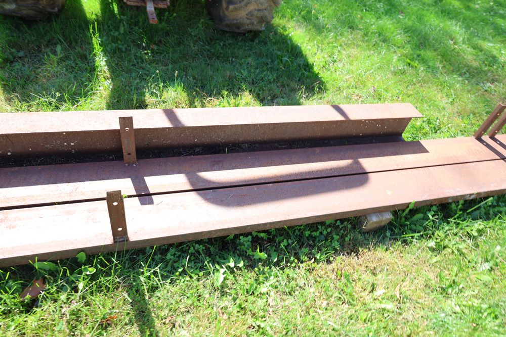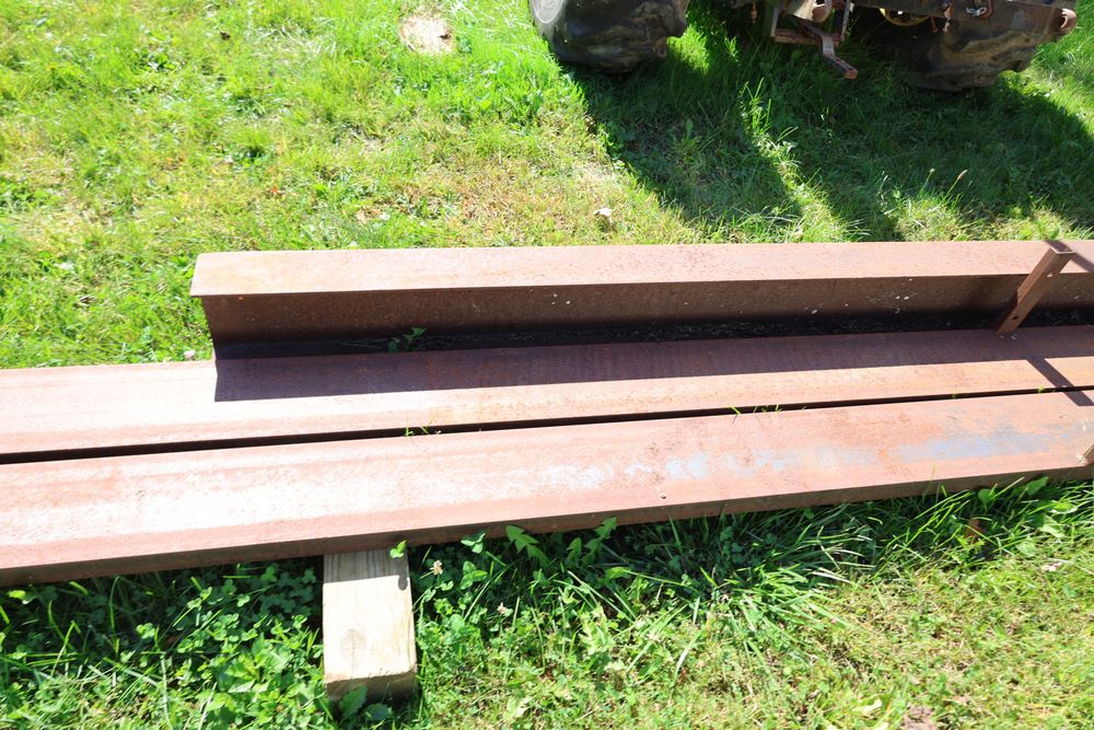 Three pieces of steel including two channel 8" x 20'3" believed to be C8 x 18 flange 2.25 wide, web 3/16" thick, and one 8" I-beam x 11'4" believed to be W8x18 flange 1/4", web 3/16".