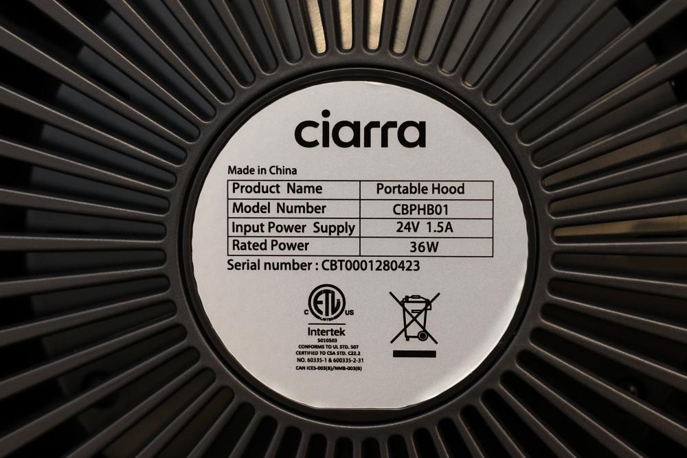 Ciarra Portable Tabletop Range Hoods, Model CBPHB01. Designed with compact dimensions (L215 x W165 x H347 mm), these units feature a rated power of 36W, input power supply of 24V 1.5A, and support two speed levels for adjustable functionality. Each unit includes triple filters and comes with power adapters and cords. Pickup only.