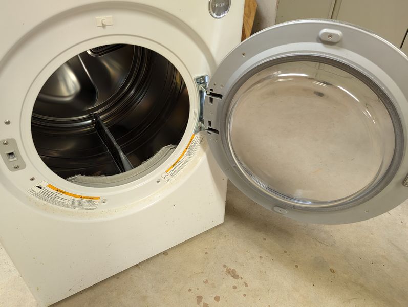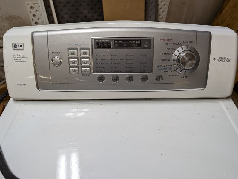 LG White Washing Machine. LG front load white washing machine, good working cond. Req ext cleaning. Inside drum looks good. Loc in basement.