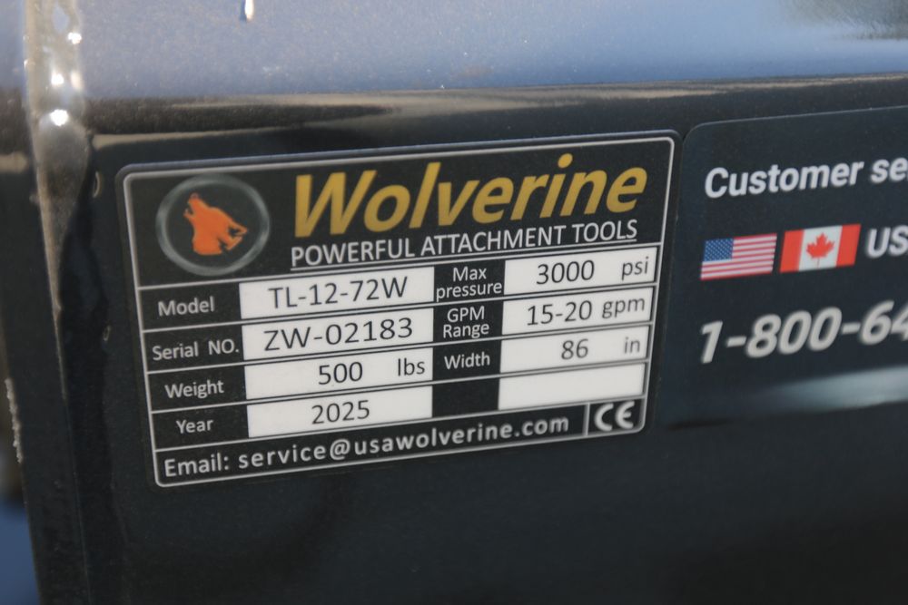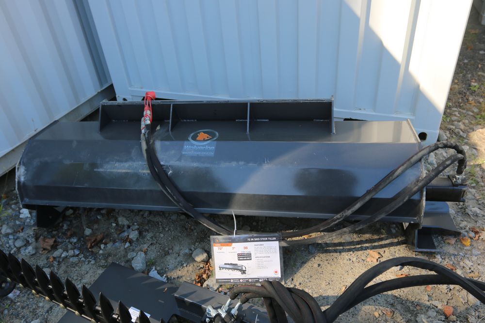 Wolverine 72" skid steer tiller attachment model TL-12-72W, 72" tilling width 7" tilling depth, 36 tines.