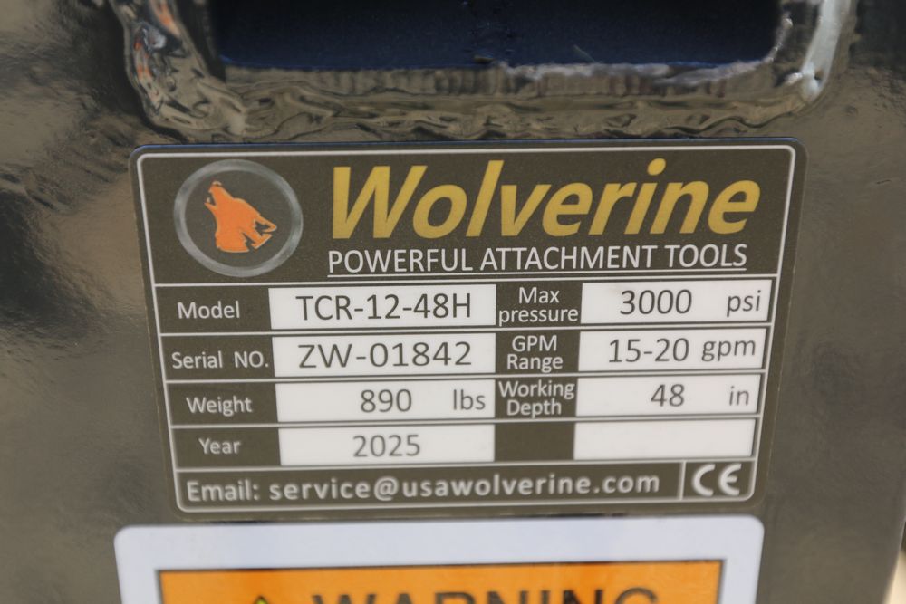 Wolverine Skid Steer Trencher attachment, model TCR-12-48H, trenching width 8", depth 48", clearing auger dia 15"
