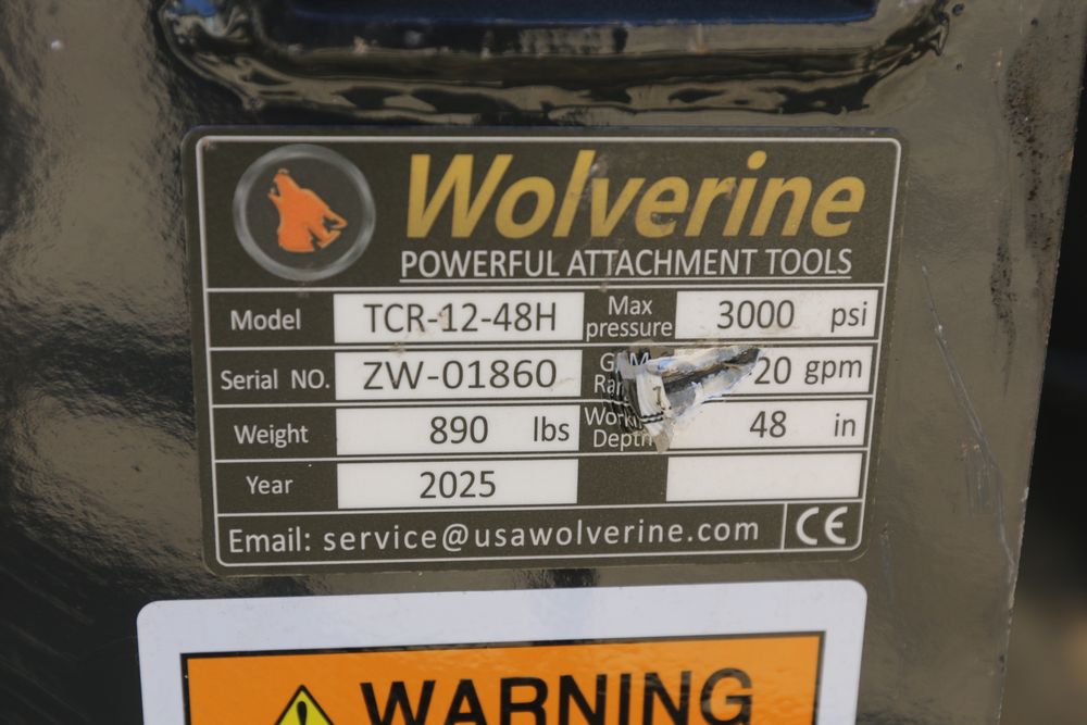Wolverine Skid Steer Trencher attachment, model TCR-12-48H, trenching width 8", depth 48", clearing auger dia 15"