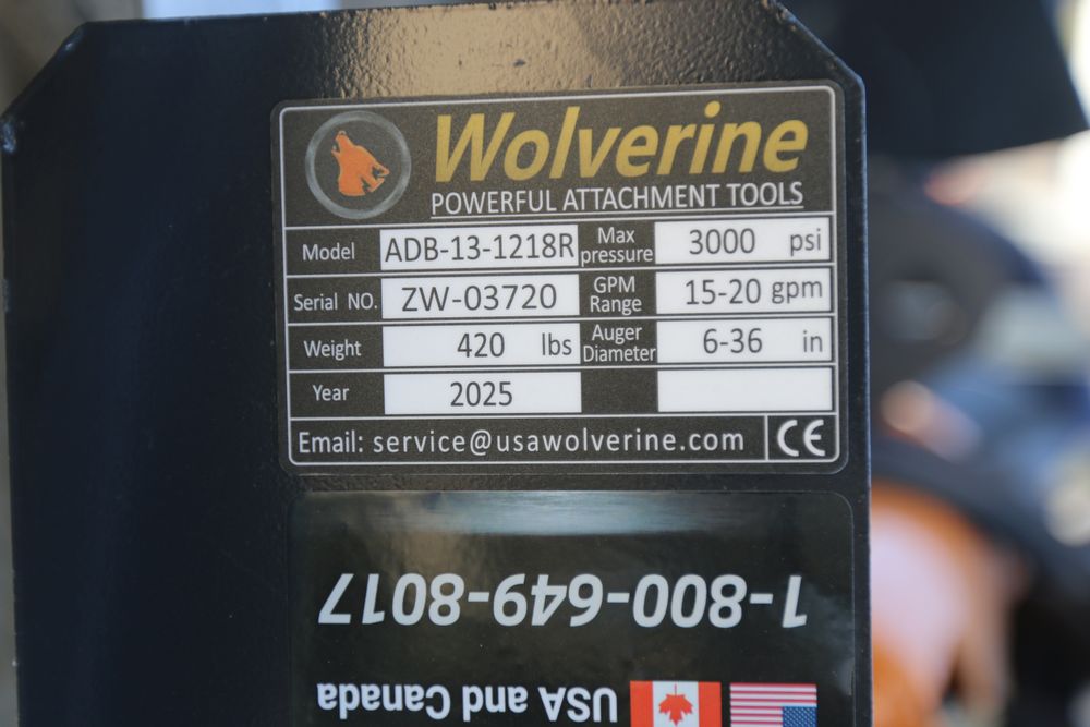 Wolverine Skid steer auger drive and bit attachment, model ADB-13-1218R, 12" and 18" auger, 38" working depth