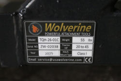 Wolverine Skid steer tractor class 2 quick hitch, model TQH-26-01C.