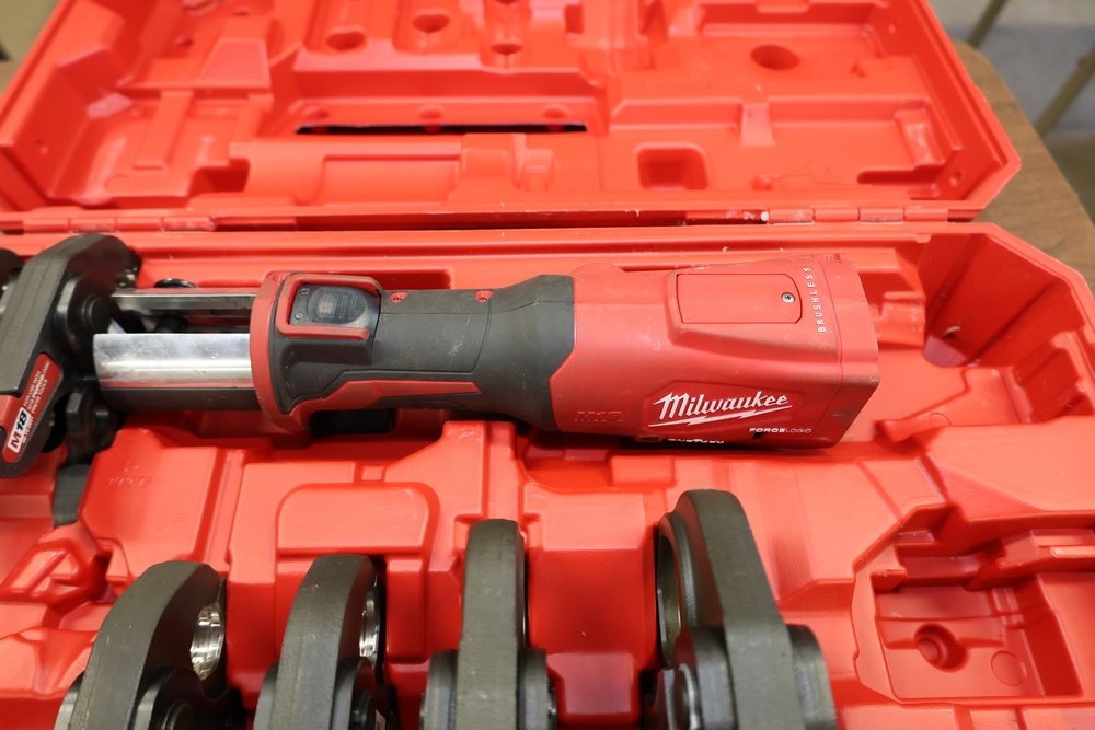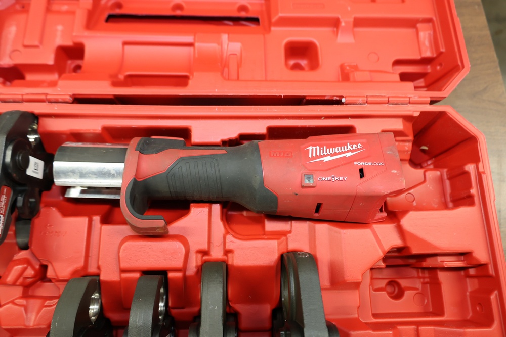 Items include Milwaukee M18 FORCELOGIC Press Tool; Rothenberger MaxiPro copper press jaw set: Milwaukee M18 SWITCH TANK powered base sprayer; pallet racks; Spectroline ultraviolet inspection lamps; Fieldpiece VP67 6 CFM dual stage vacuum pump; Graco Magnum XR5 airless paint sprayer,; Ridgid model MS1050 1 10-inch compound miter saw; Blue Fastenal metal storage unit; lighting equipment; ClearView side mirror box; Industrial-grade core drilling rig; Spartan model 100 drain cleaning machine; HVAC/refrigeration service manifolds; lot of hand tools & power tools; Gerber toilet tank assembly, office furniture/equipment; electronics & much more. Items are located in Newburgh, NY.