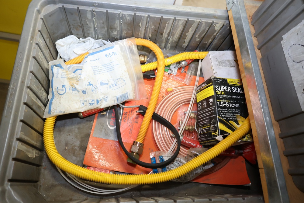 Items include Milwaukee M18 FORCELOGIC Press Tool; Rothenberger MaxiPro copper press jaw set: Milwaukee M18 SWITCH TANK powered base sprayer; pallet racks; Spectroline ultraviolet inspection lamps; Fieldpiece VP67 6 CFM dual stage vacuum pump; Graco Magnum XR5 airless paint sprayer,; Ridgid model MS1050 1 10-inch compound miter saw; Blue Fastenal metal storage unit; lighting equipment; ClearView side mirror box; Industrial-grade core drilling rig; Spartan model 100 drain cleaning machine; HVAC/refrigeration service manifolds; lot of hand tools & power tools; Gerber toilet tank assembly, office furniture/equipment; electronics & much more. Items are located in Newburgh, NY.