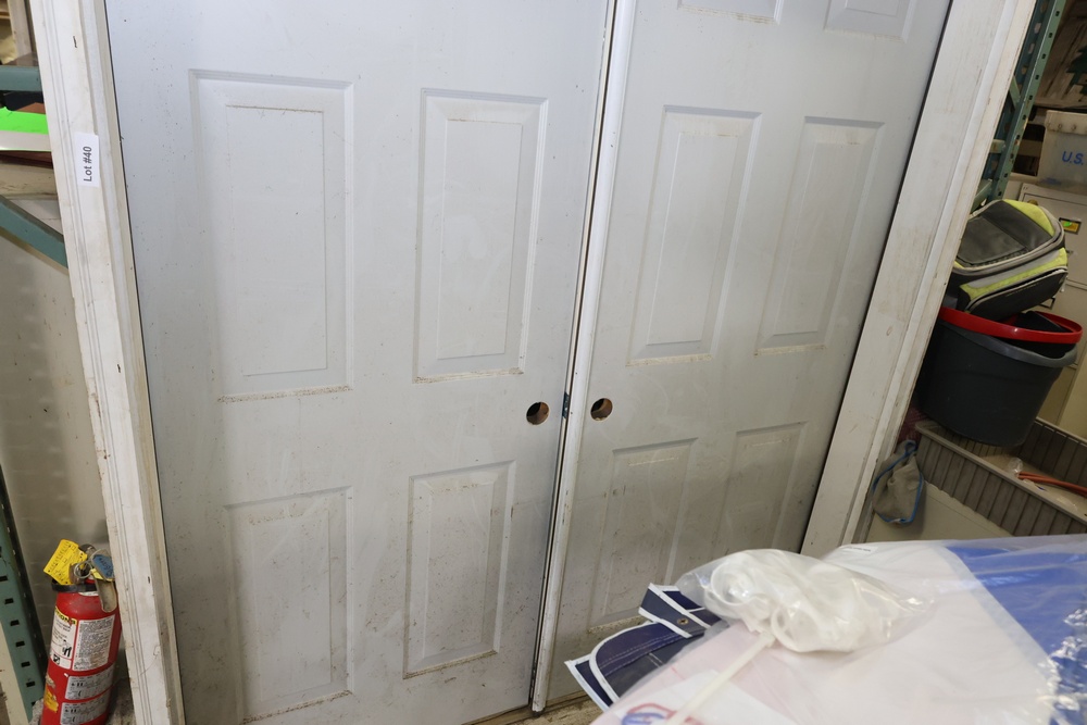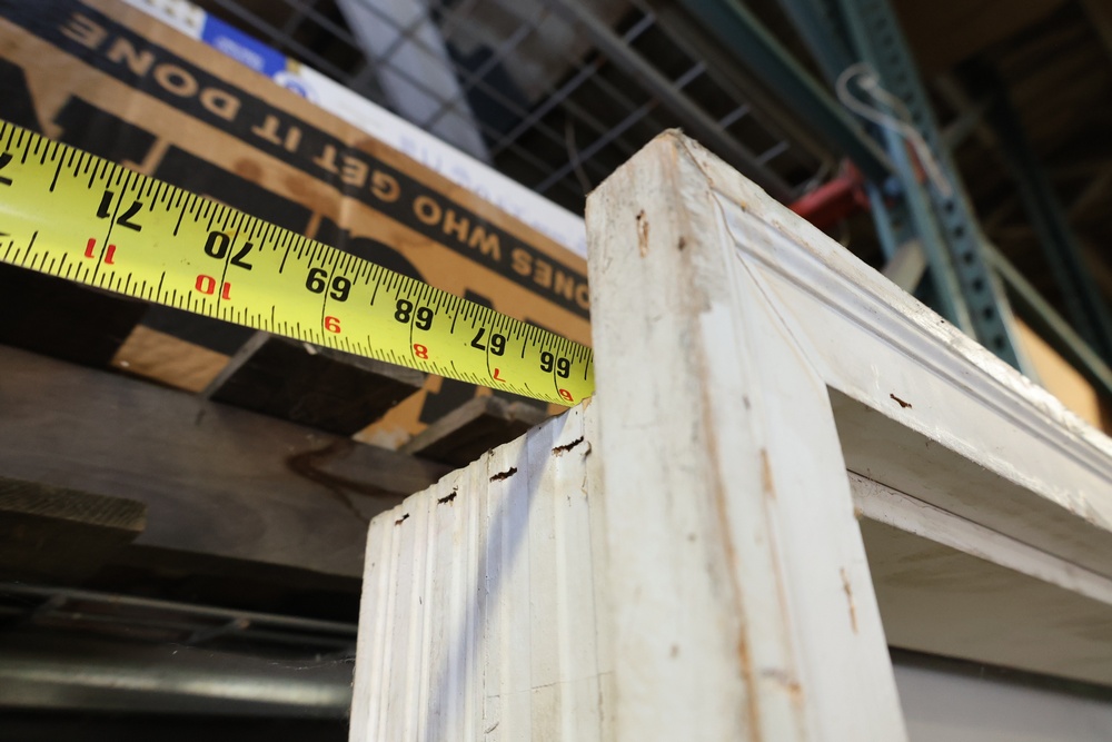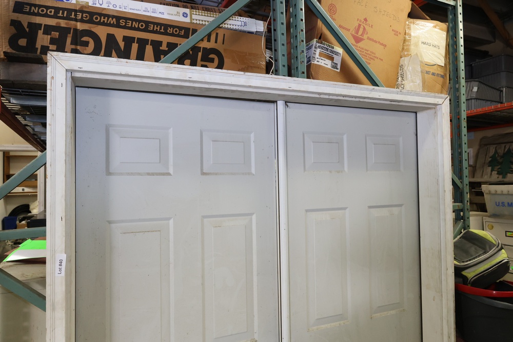 White entrance door With Frame and Trim. The dimensions are approximately 80 inches in height and 72 inches in width. Pickup only.