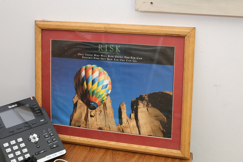 Framed Motivational and Inspirational Posters. Includes multiple themes such as Excellence, Communication, Service, Vision, Opportunity, Dream, Integrity, Risk, Optimism, and others. Each poster features unique artwork with corresponding motivational quotes. Buyer must take all.
